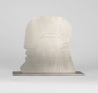 Kopf-Haus (Projekt für Unicef). Edelstahl, gebürstet. 2002. 28,5 x 34 x 10 cm.