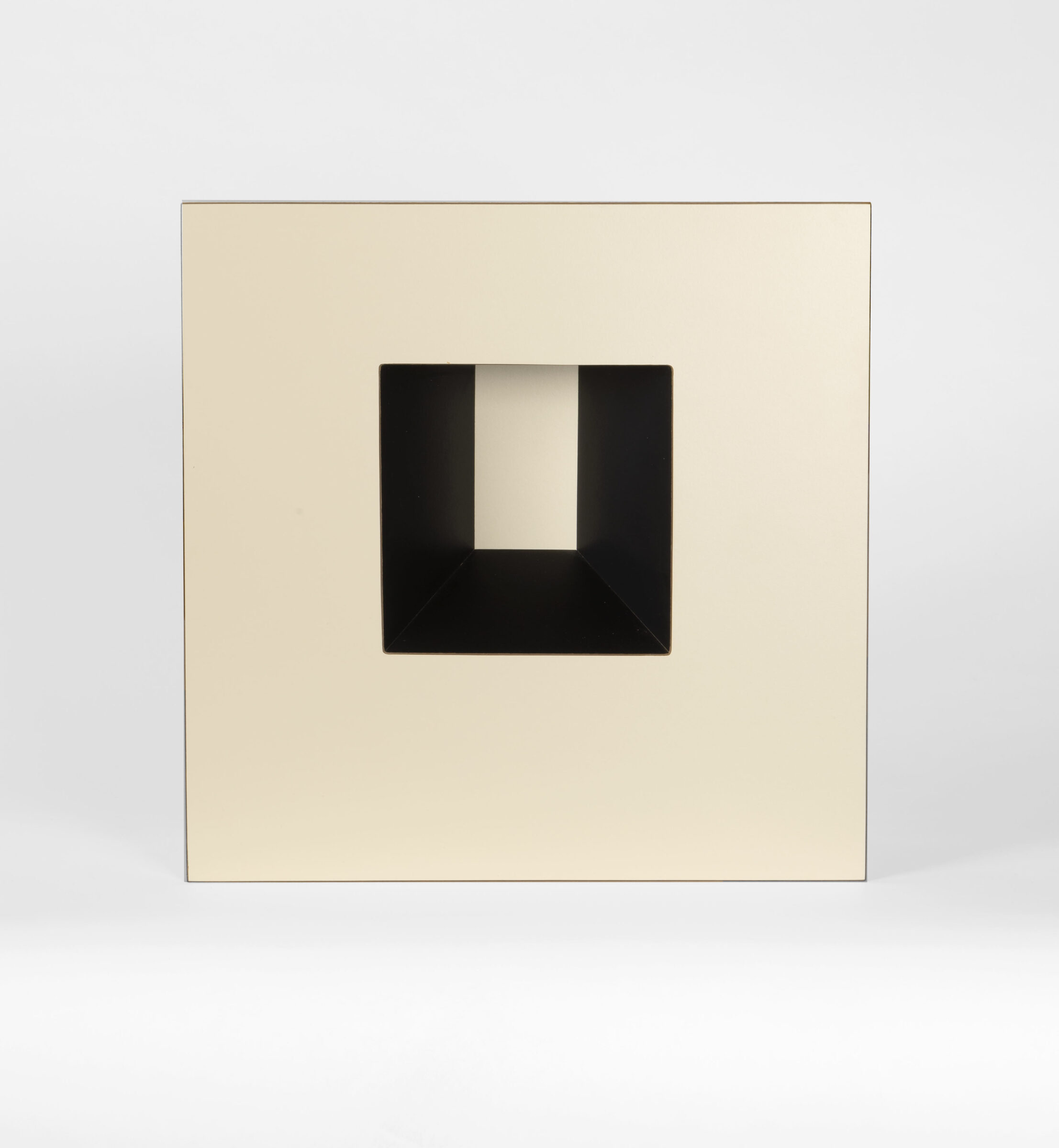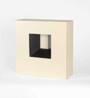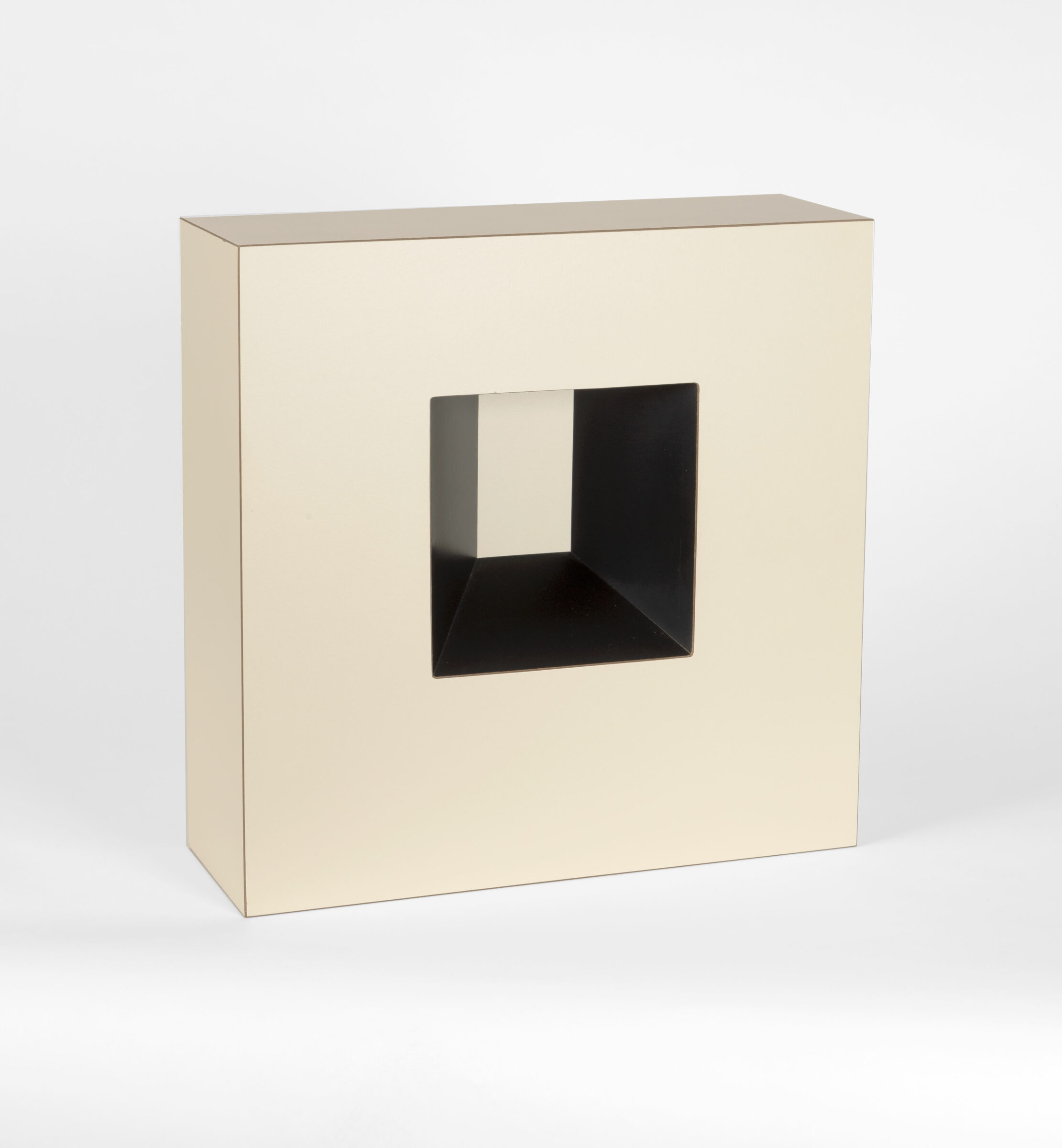Fractal. Schwarze u. weiße Schichtstoffplatten über Holz. 1987. 43,3 x 43,3 x 14,8 cm.