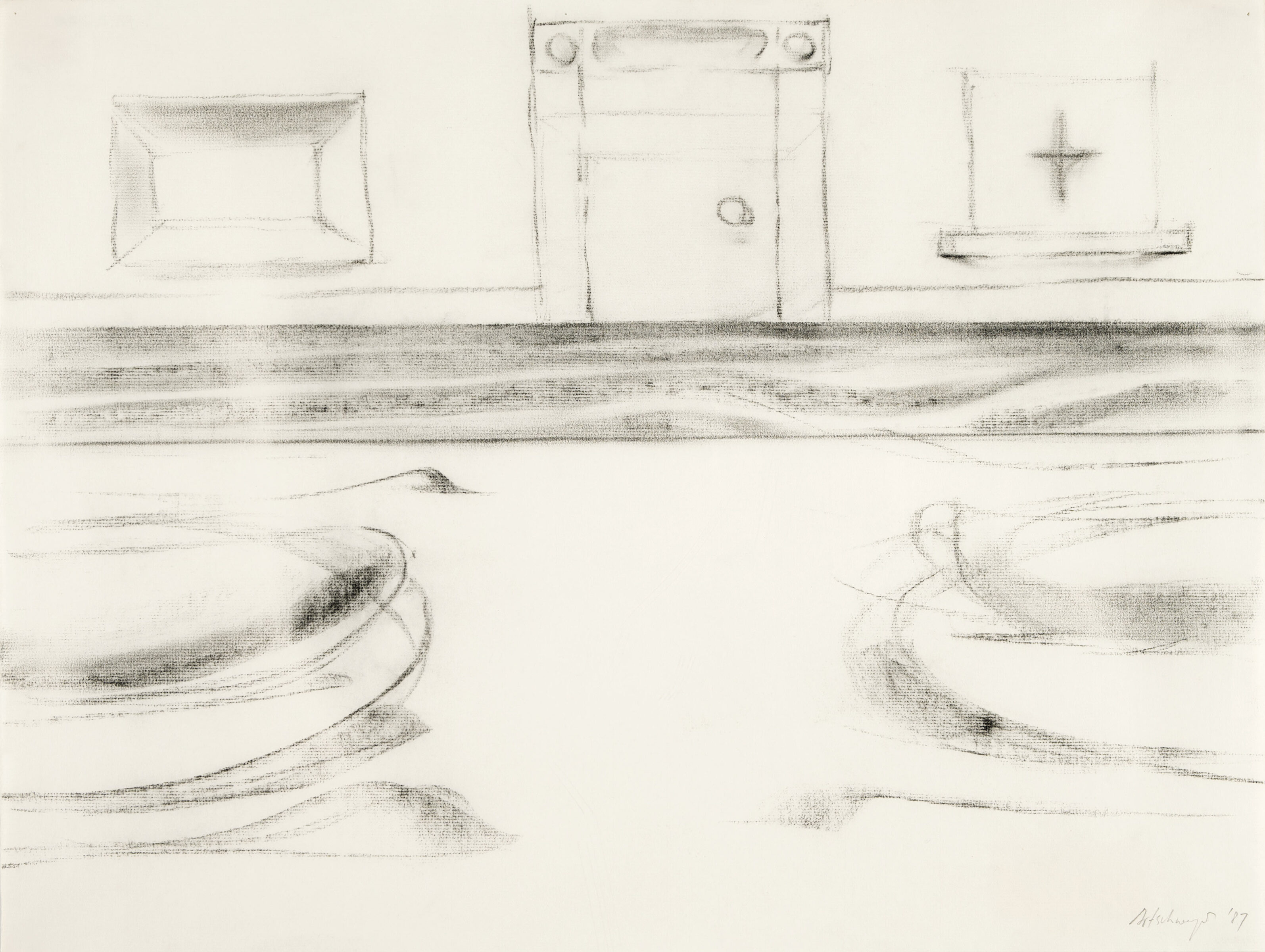 o.T. Schwarze Kreide auf Bütten. 1987. 48,3 x 64 cm, im Passepartout freigestellt. Unter Glas gerahmt.