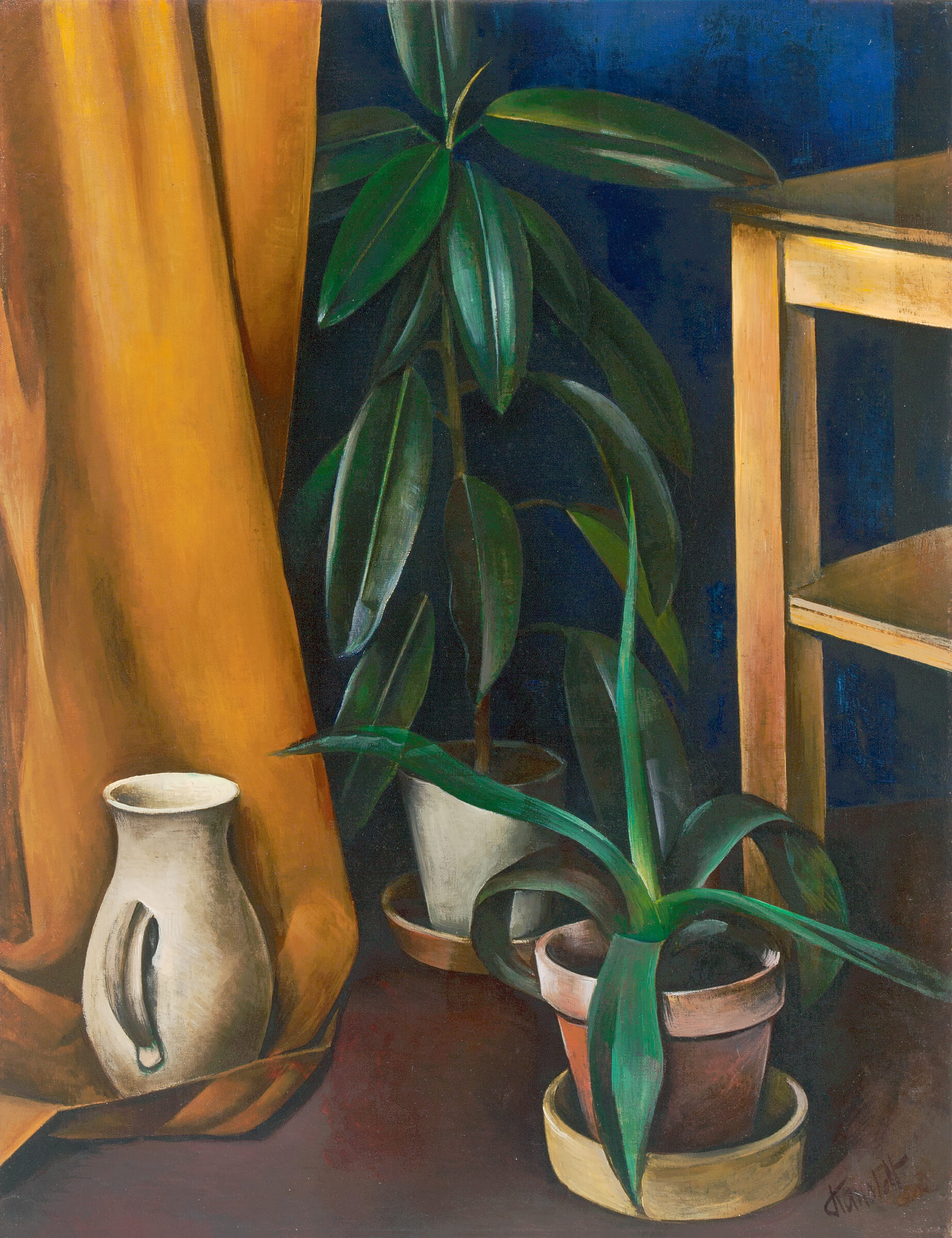 Stilleben mit Agave und Krug (Stilleben VII 1926). Öl auf Leinwand. 1926. 90,8 x 71 cm. Gerahmt.