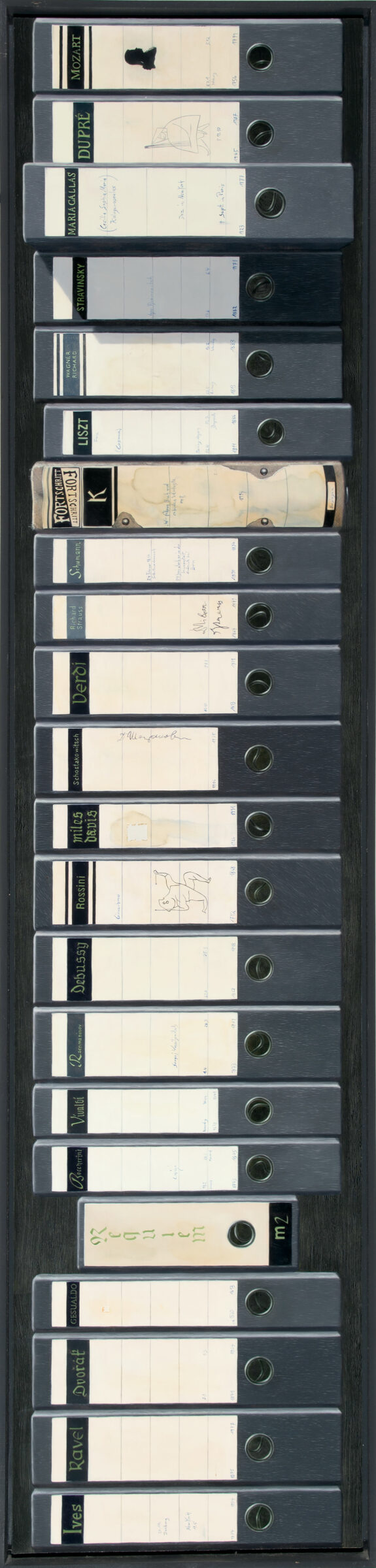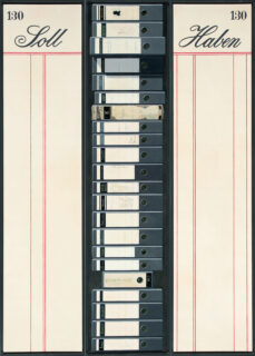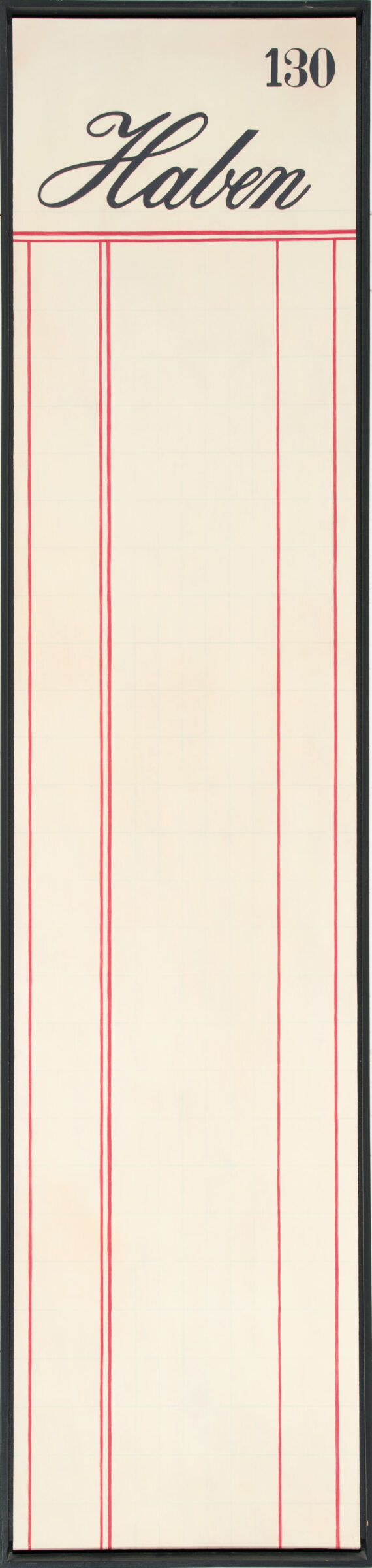 Wir führen Buch und erleiden Verluste (Musik II). Dreiteiliges Wandobjekt. Öl auf feiner Leinwand auf Holz. 1994. Jeweils 160 x 36,5 cm u. in Künstlerleiste gerahmt.
