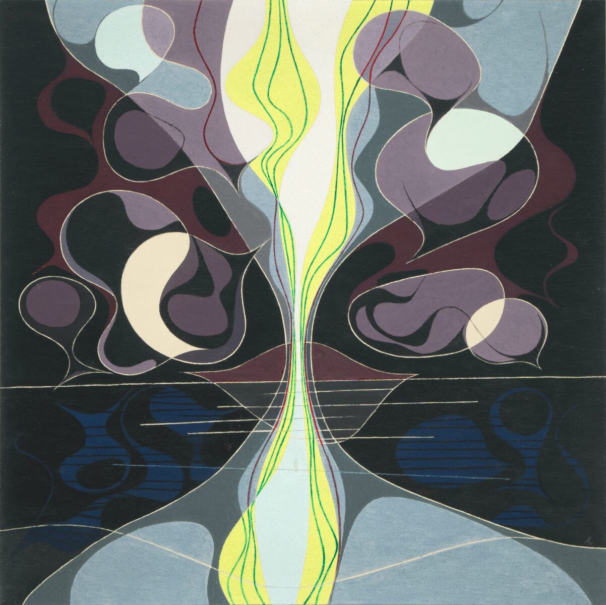 Experiment zur Nacht (Atombombe). Öl u. Sand auf Leinwand. 1948. 116 x 116 cm. Gerahmt.