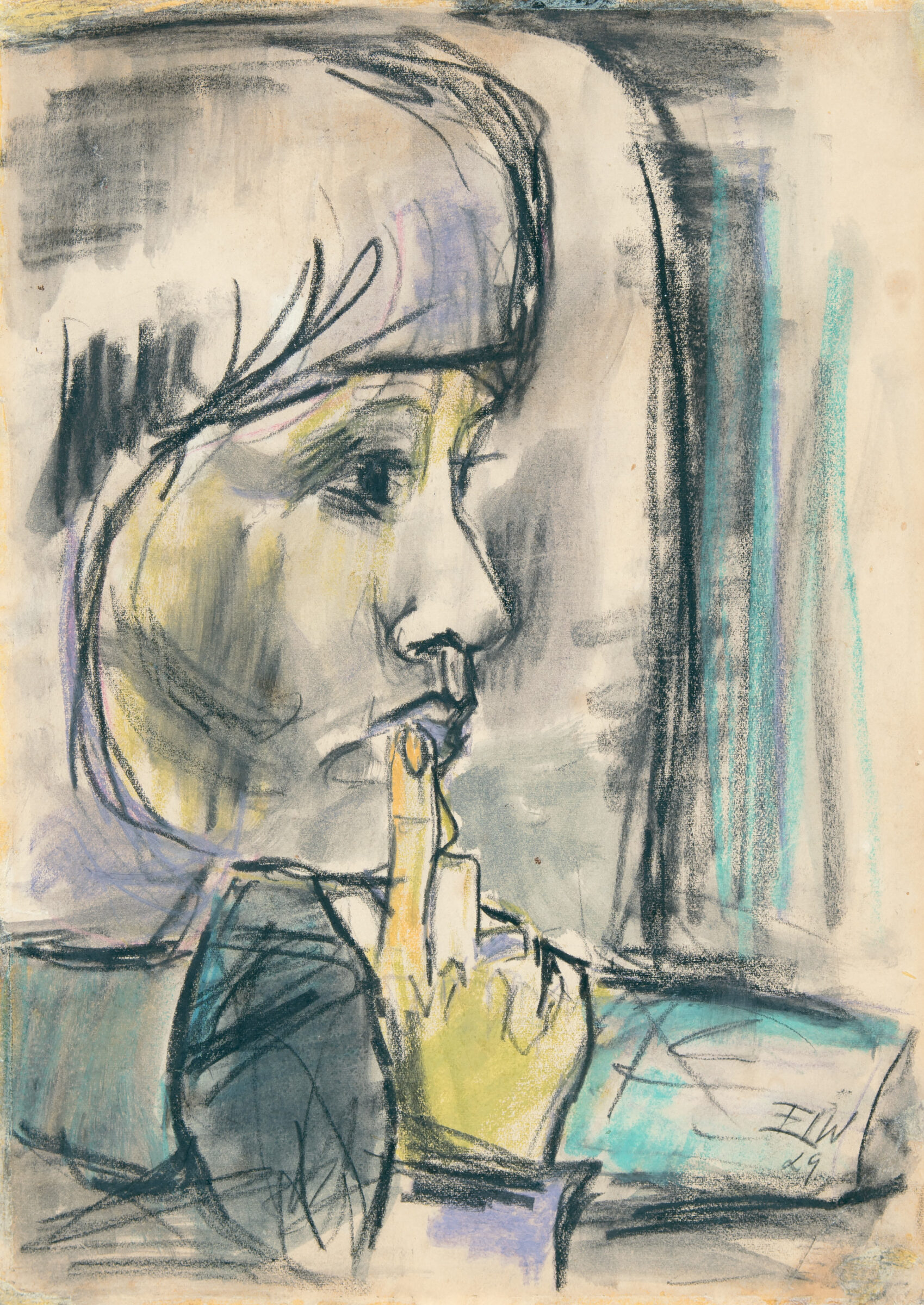 Frauenbildnis. Pastell, teilweise laviert, auf chamoisfarbenem Papier. 1929. 29,7 x 21 cm. Unter Glas gerahmt.