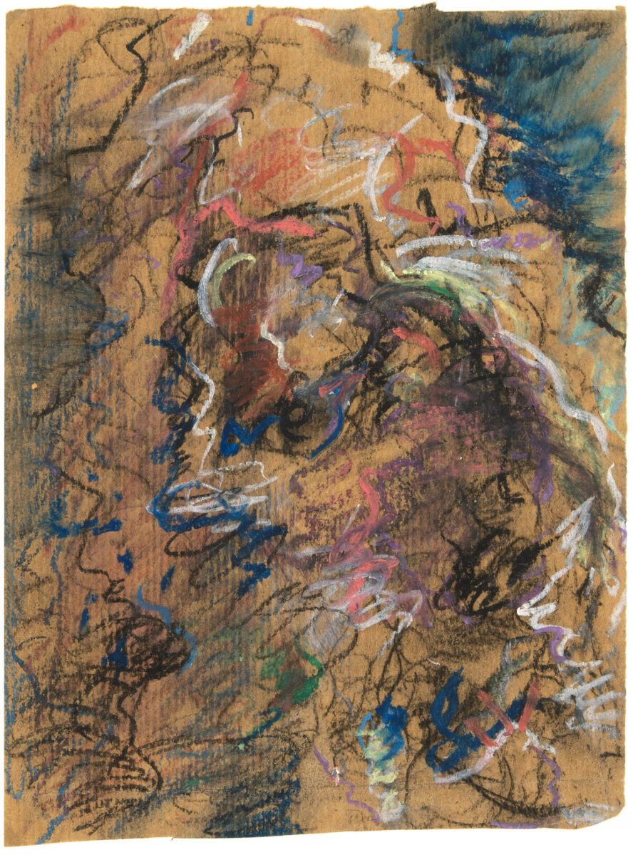 o.T. (Kopf). Pastell auf braunem Bütten. 1977. 29,5 x 22 cm. Unter Glas gerahmt.