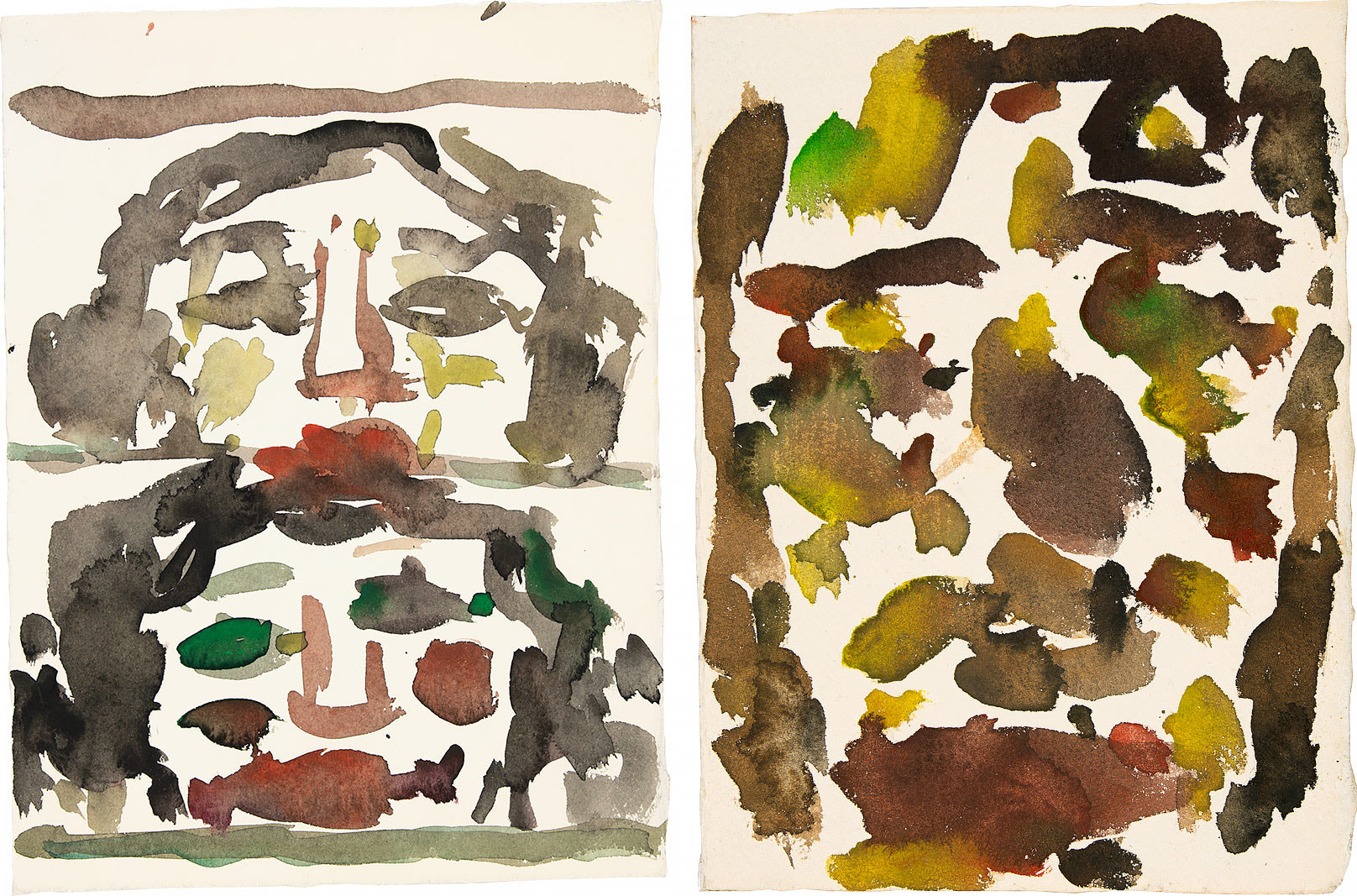 o.T. (Zwei Köpfe). Zwei Blatt Aquarelle auf Büttenkarton. 2001/02. 28,8 x 21,5 bzw. 19,9 x 14,6 cm.