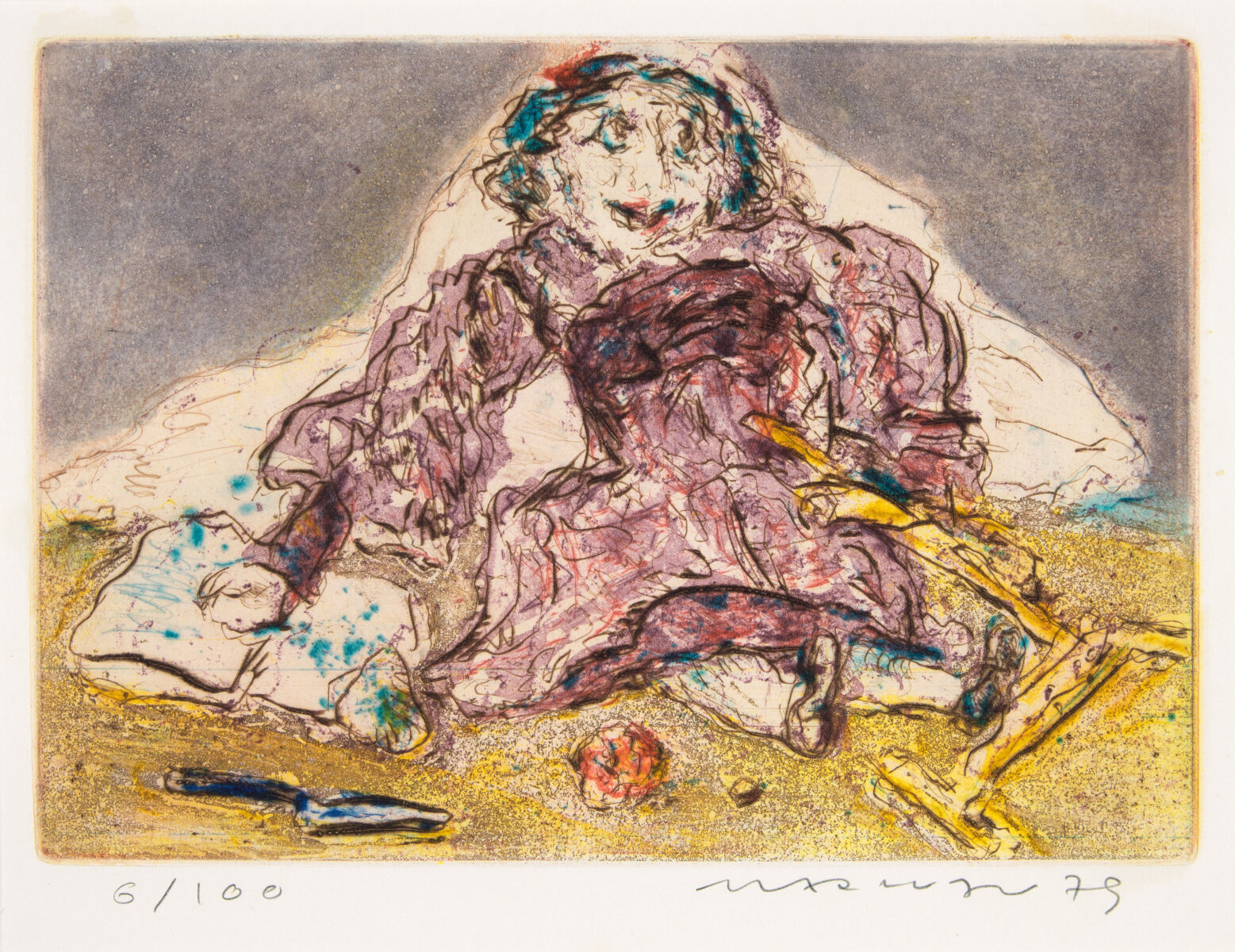 Marionette. Farbradierung auf Büttenkarton. 1979. 13,9 x 19,7 (20,1 x 29,6) cm, unter Passepartout.