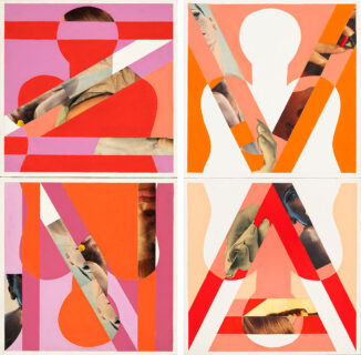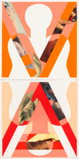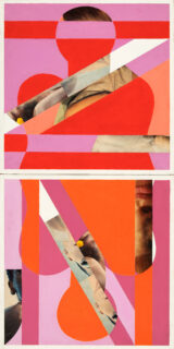 o.T. (Pop Art-Diptychon). Zwei Arbeiten aus jeweils zwei quadratischen Gemälden. Öl, Fotocollage u. Bleistift auf Leinwand. 1968. Paarweise in Künstlerleiste gerahmt. Jeweils 110 x 55,5 cm.