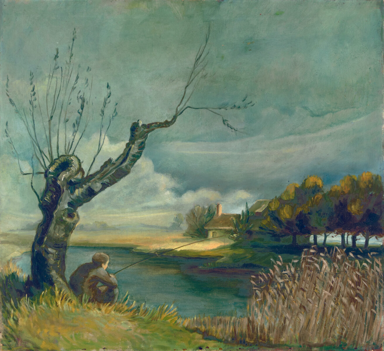 Angler. Öl auf Leinwand. 1940er Jahre. 55,5 x 60 cm. Gerahmt.