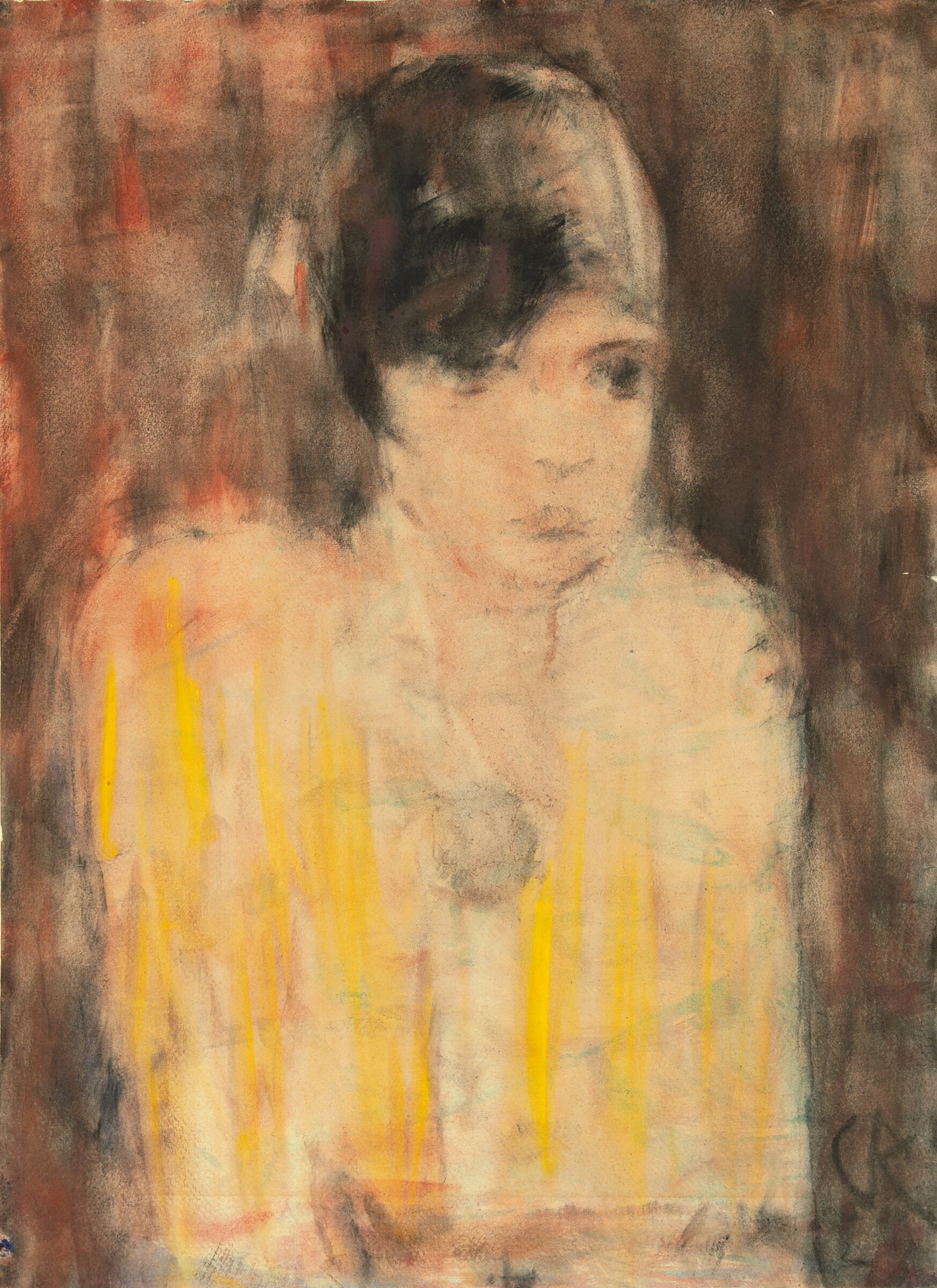 Mit einer Expertise von Prof. Dr. Paul Vogt von der Kulturstiftung Ruhr vom 29. Oktober 1990 (in Kopie beigegeben), dort datiert. - Die Arbeit ist im Christian Rohlfs Archiv des Osthaus-Museums Hagen unter der Nummer "CRA 247/23" registriert (unter dem Titel "Kecke junge Dame"). - Provenienz: Sammlung Dr. Hugo und Margarete Bamberger, Hannover und später New York, von diesen wohl direkt beim Künstler erworben; durch Erbfolge in der Sammlung Lewinson, Brookline, Massachusetts (USA) bis 2022; Privatsammlung Baden-Württemberg. - Flapper, die amerikanischen It-Girls der 1920er Jahre, trugen kurze Röcke, kurze Haare und verbrachten ihre Abende in Jazzclubs, wo sie rauchten und Alkohol tranken. Diese Frauen, die zur damaligen Zeit als aufsässig und keck galten, widersetzten sich im Zuge der beginnenden Emanzipationsbewegung den traditionellen und gesellschaftlichen Konventionen. Als Prototypen eines neuen, selbstbewussten Frauentyps spiegeln sie den Zeitgeist des mondänen und aufregenden Lebens in den Weltmetropolen der Goldenen Zwanzigerjahre wider. Im Kontext von Rohlfs Spätwerk wirkt diese herausragende Arbeit besonders bemerkenswert. Ab 1927 in Ascona ansässig, widmete sich der Maler vornehmlich farbintensiven Blumen- und Landschaftsbildern. Auch wenn Rohlfs in vorliegendem Bild das Motiv des prominenten Frauentypus aufgriff, verzichtete er bewusst darauf, sie in ihrer gewohnten Umgebung oder in einer selbstbewussten Pose darzustellen, sondern blieb seinem einzigartigen und phantastischen Stil der späten Zwanzigerjahre Jahre treu: "Nichts ist deutlich umgrenzt, stets verschwimmt das Motiv in sich und mit dem Umfeld, taucht aus ihm auf und verschmilzt mit ihm in einem atmosphärischen Farbenfluß, der nicht auf den Gegenstand begrenzt ist, sondern sich zu ihm hin entwickelt und an ihm steigert." (Erich Franz, in: Christian Rohlfs. Das Licht in den Dingen. Emden, Kunsthalle u.a., 1999, S. 11) - Stellenweise leichte Randläsuren.