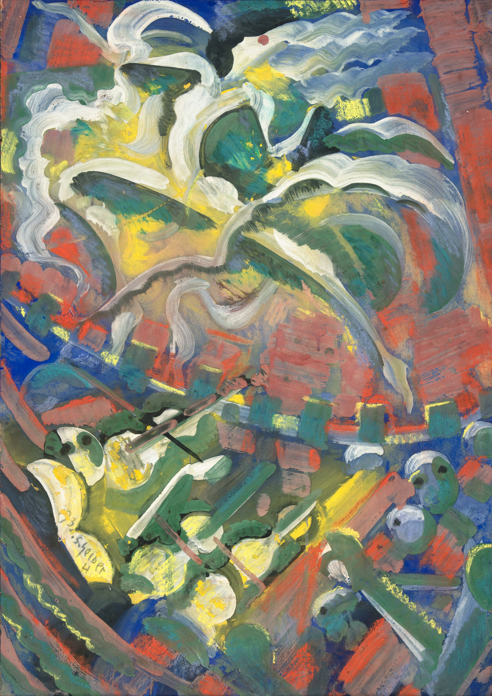 Tänzerin mit Orchester. Gouache u. Pastell, teils laviert, auf Karton. 1937. 67,4 x 47,5 cm. Unter Glas gerahmt.