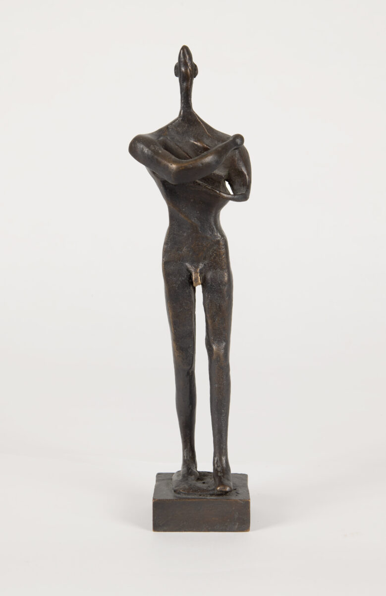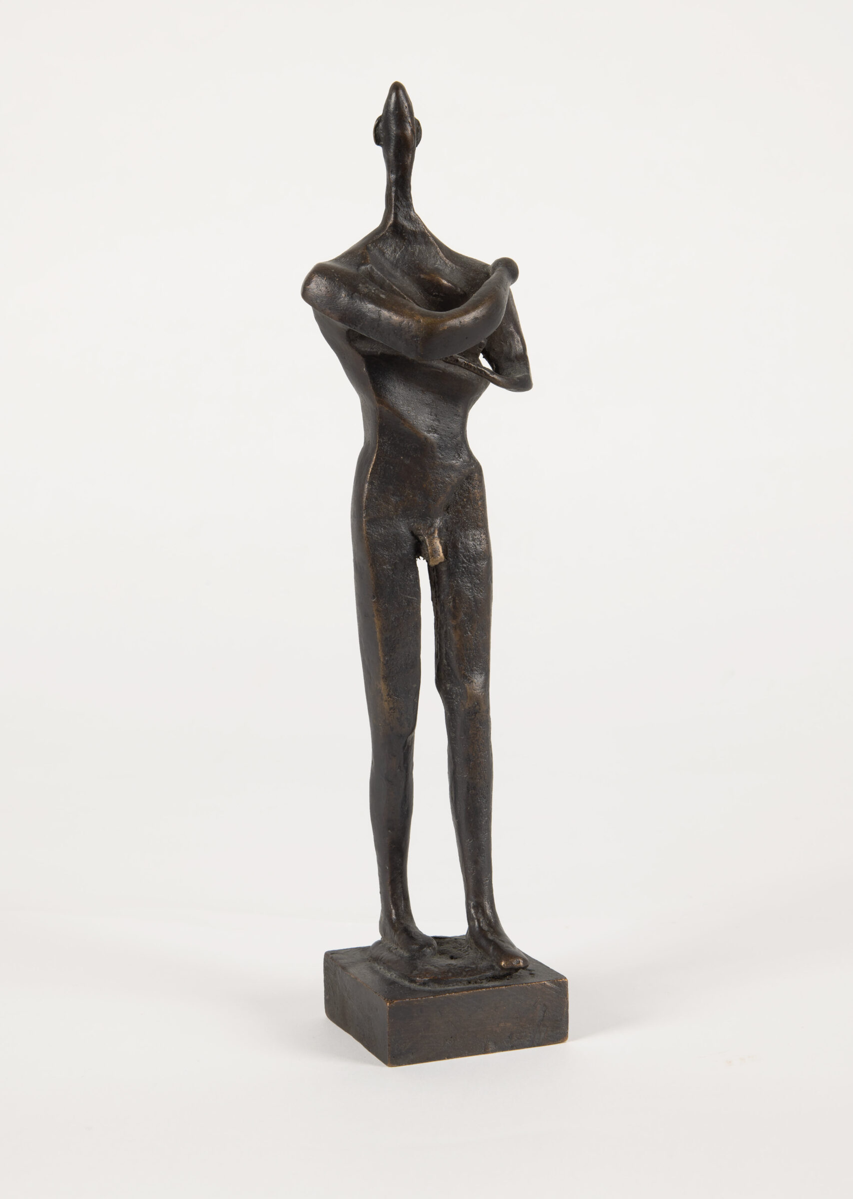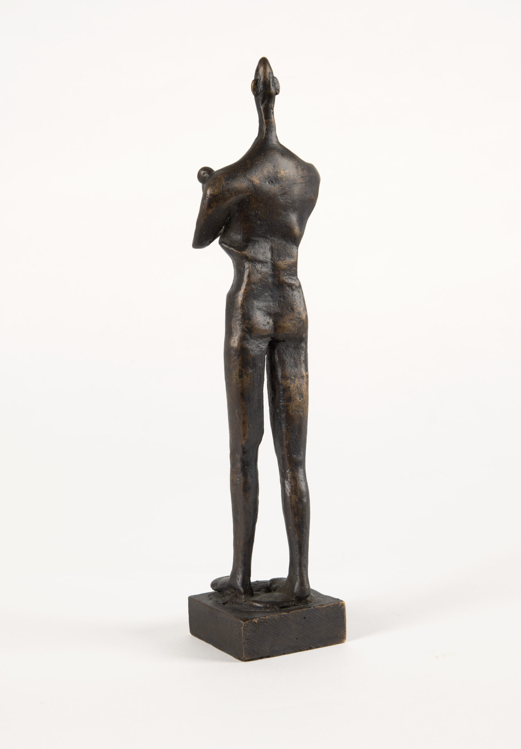 Budapester Mann. Bronze mit brauner Patina. 25,3 x 6,2 x 5 cm.