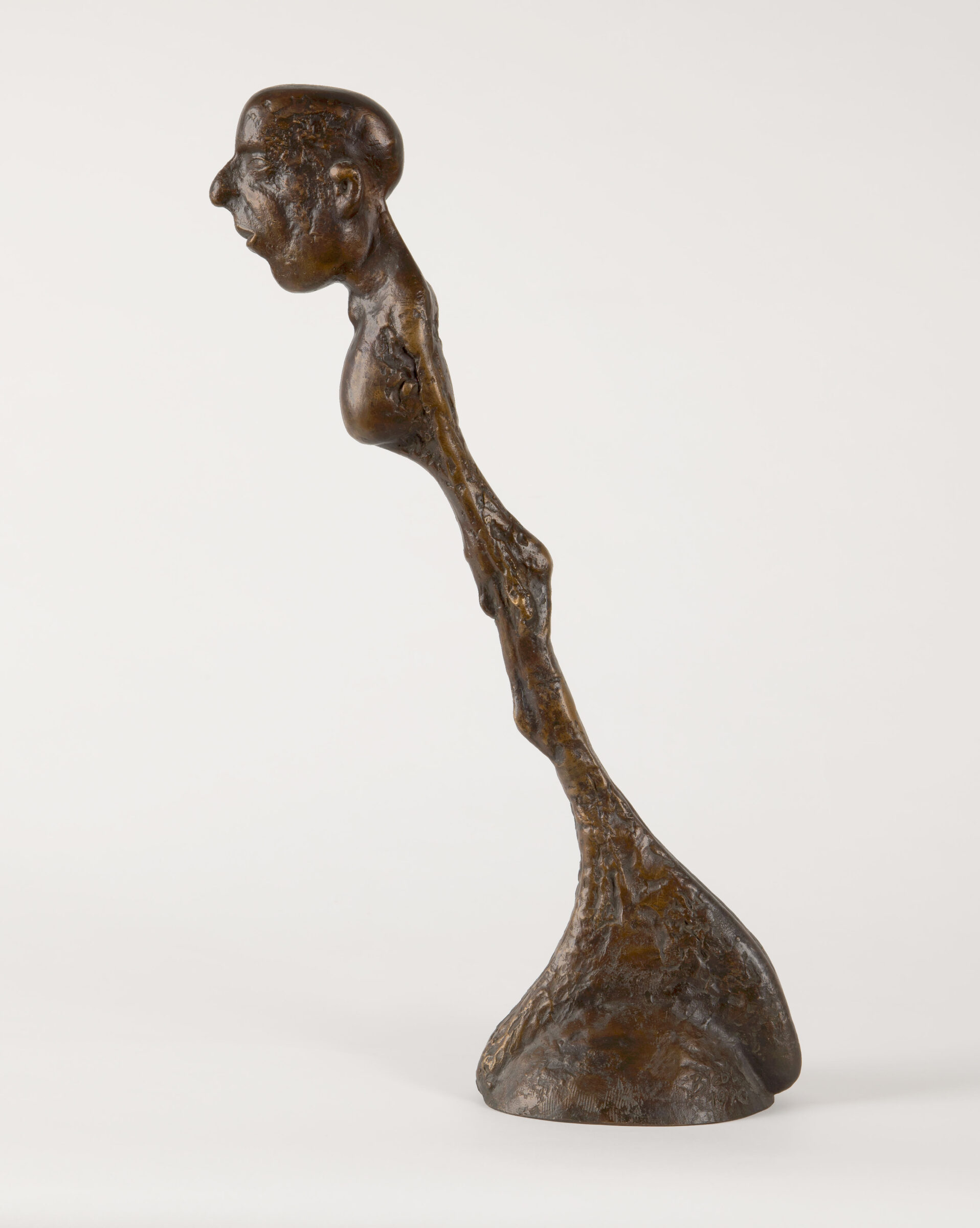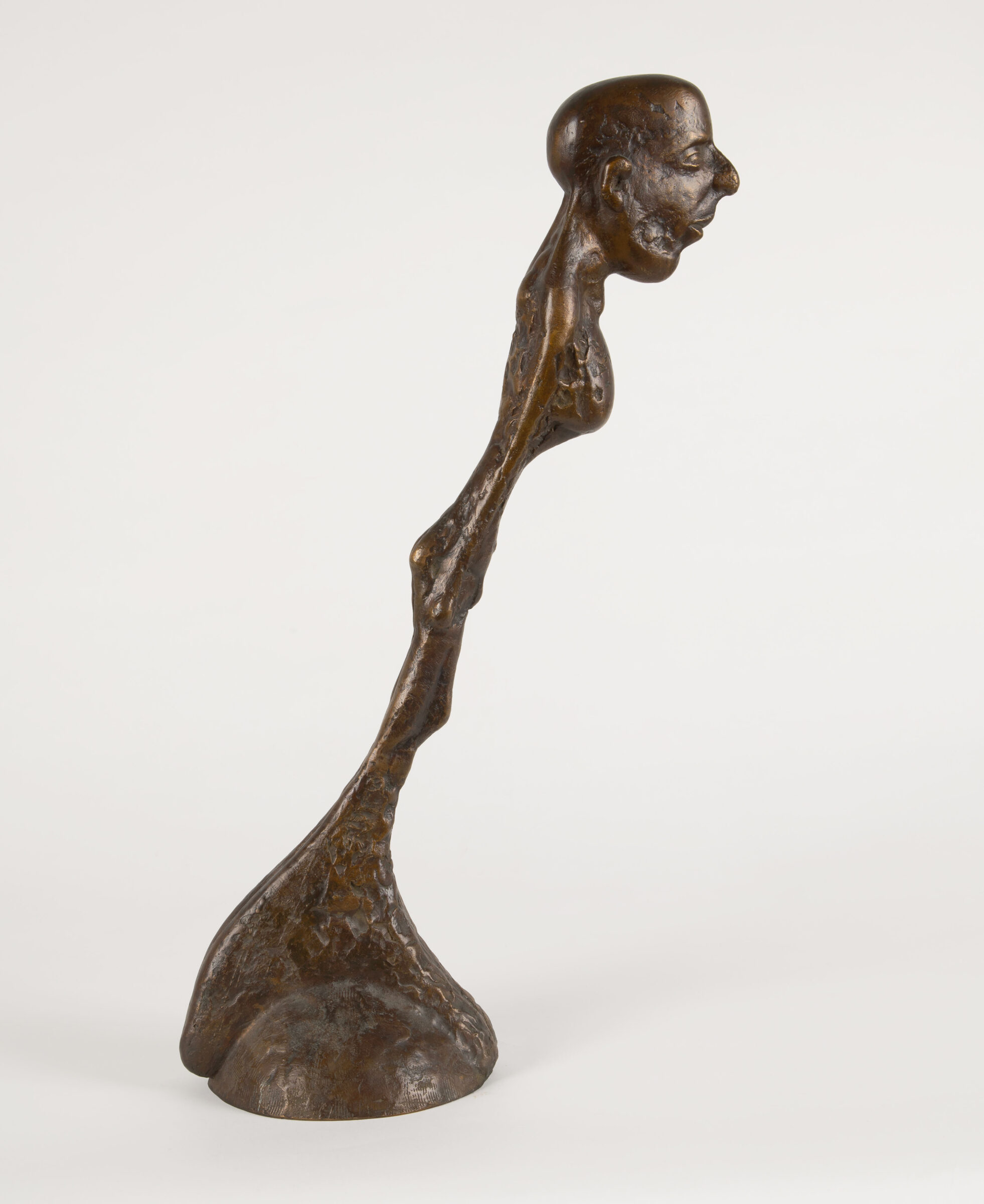 Schräger Mann. Bronze mit brauner Patina. 1990. 52,5 x 29 x 13 cm.