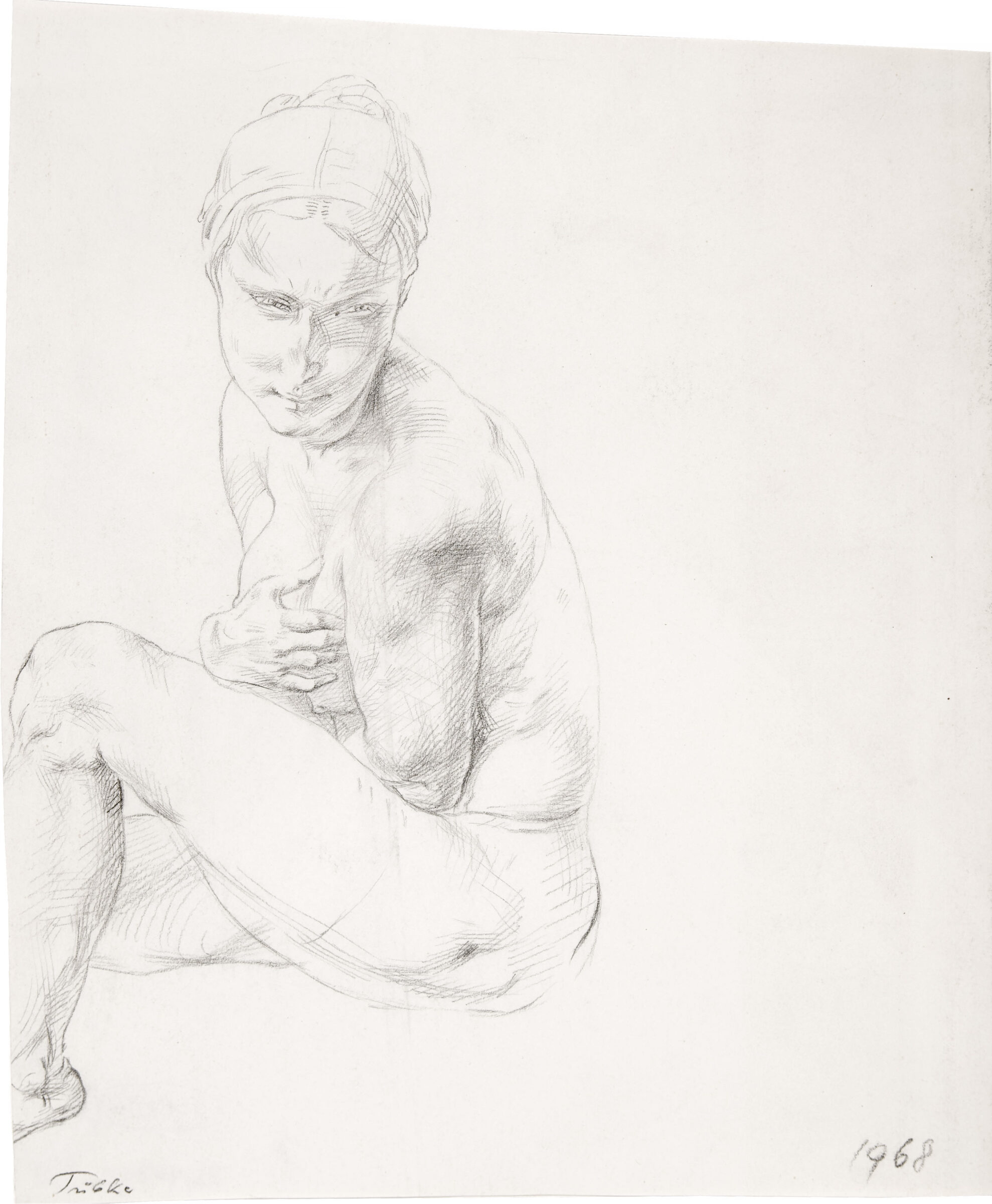 o.T. (Sitzender weiblicher Akt). Bleistift auf Karton. 1968. 26 x 21,3 cm, unter Passepartout.