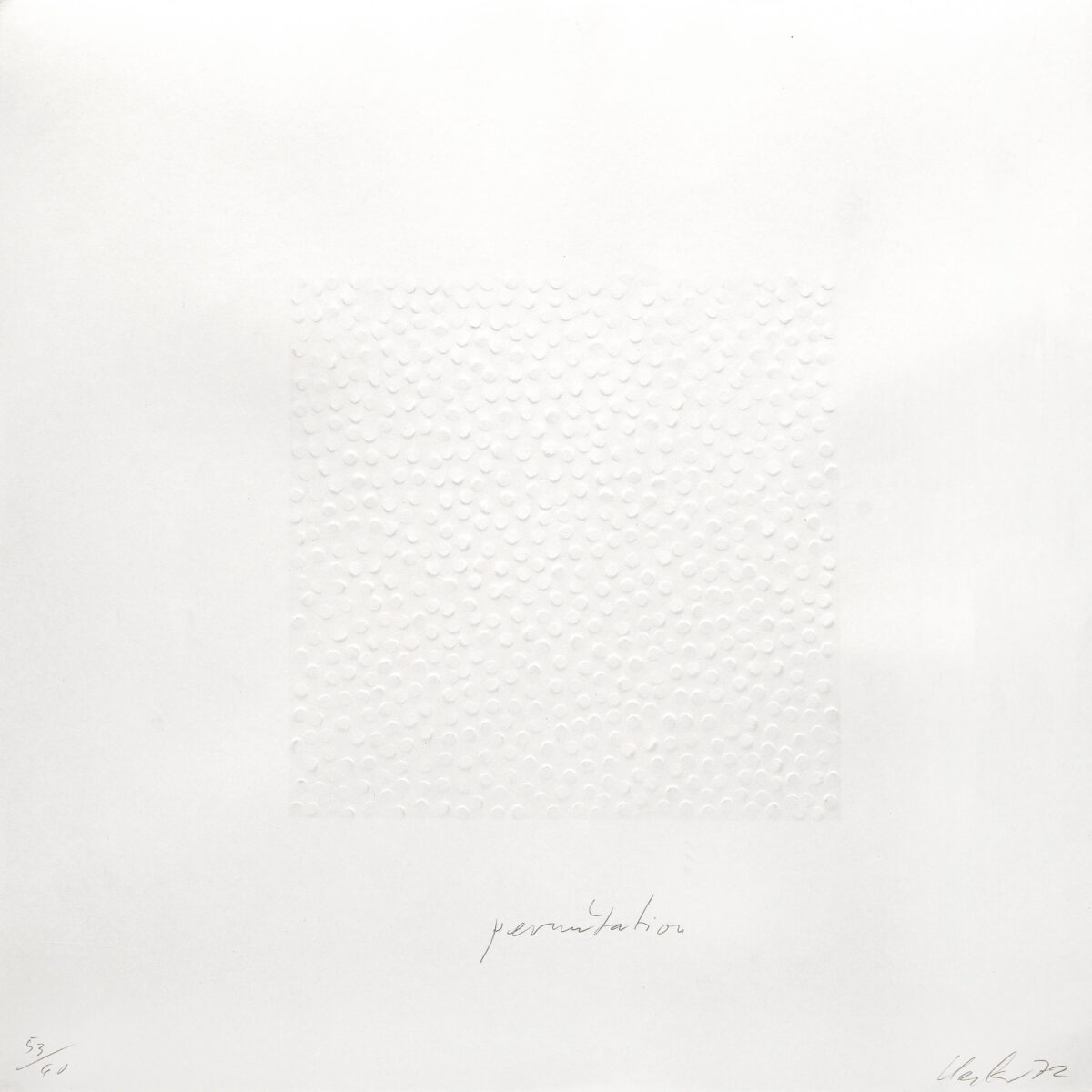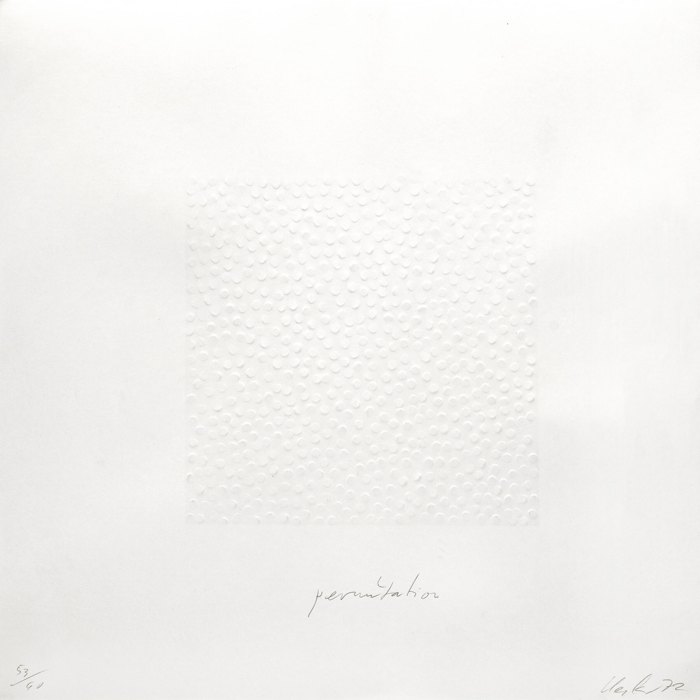 Permutation. Prägedruck auf Karton. 1972. 25 x 25 (50 x 50) cm, im Passepartout freigestellt. Unter Glas gerahmt.