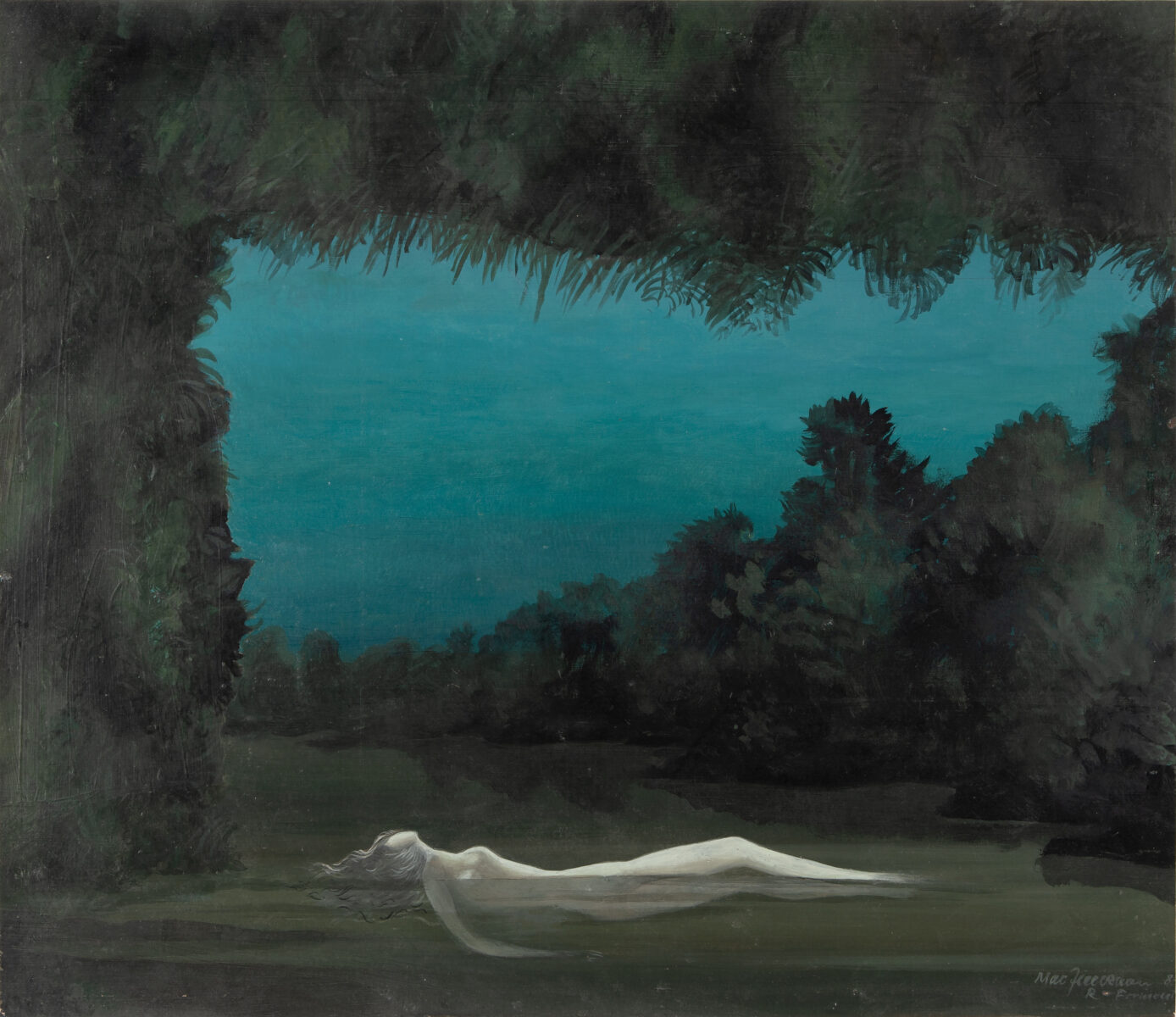 John Everetts Ophelia. Öl auf fester Pappe. 1984. 33 x 38 cm. Gerahmt.