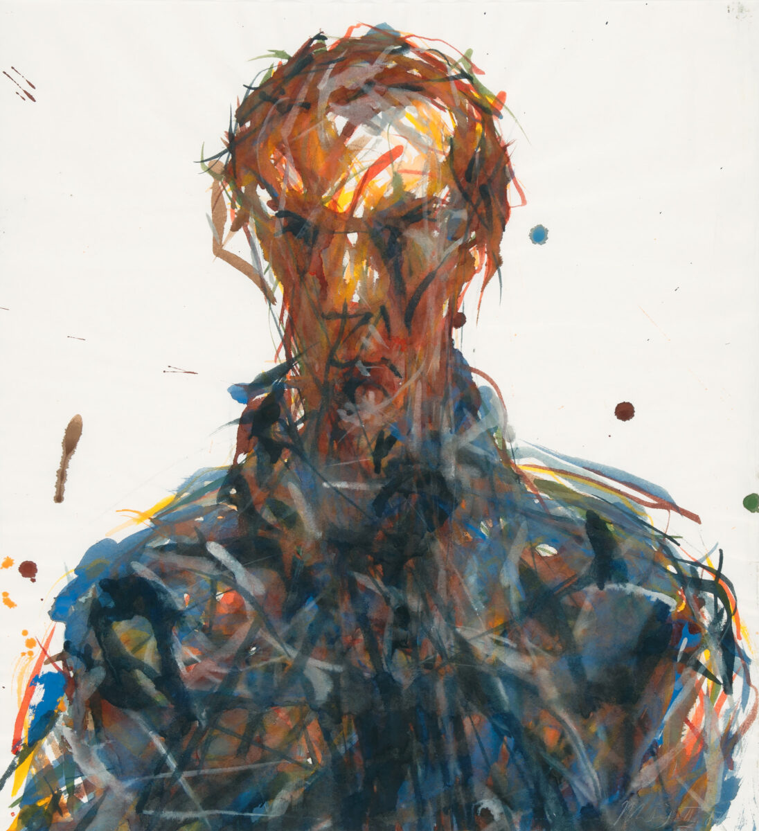 Bildnis T.P. Aquarell auf festem Japan. 1987. 67,3 x 61 cm, im Passepartout freigestellt. Unter Glas gerahmt.