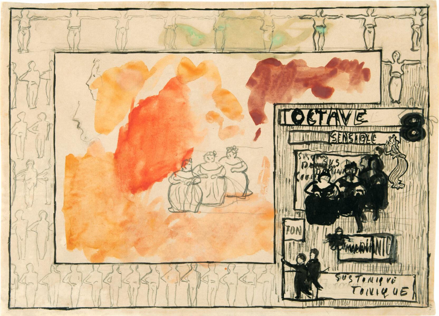 L'Octave. Aquarell, Pinsel in Tusche u. Bleistift auf Papier. 1893. 20 x 27,5 cm, im Passepartout freigestellt. Unter Glas gerahmt.