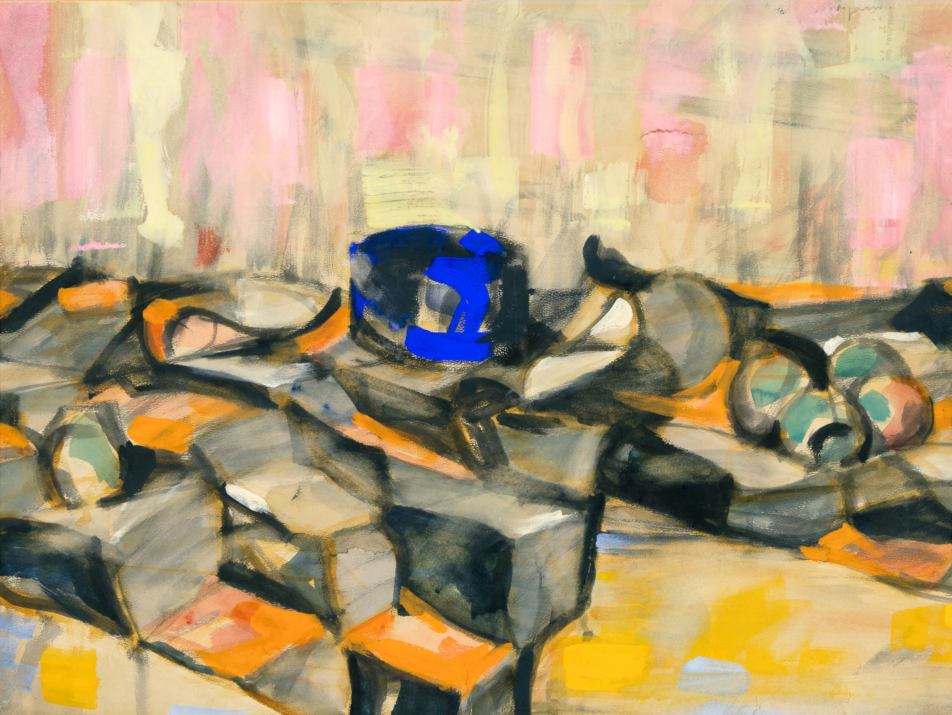 Gewürfelte Decke. Aquarell u. Gouache auf leichtem Karton. 1922. 48 x 64,5 cm, unter Passepartout. Unter Glas gerahmt.