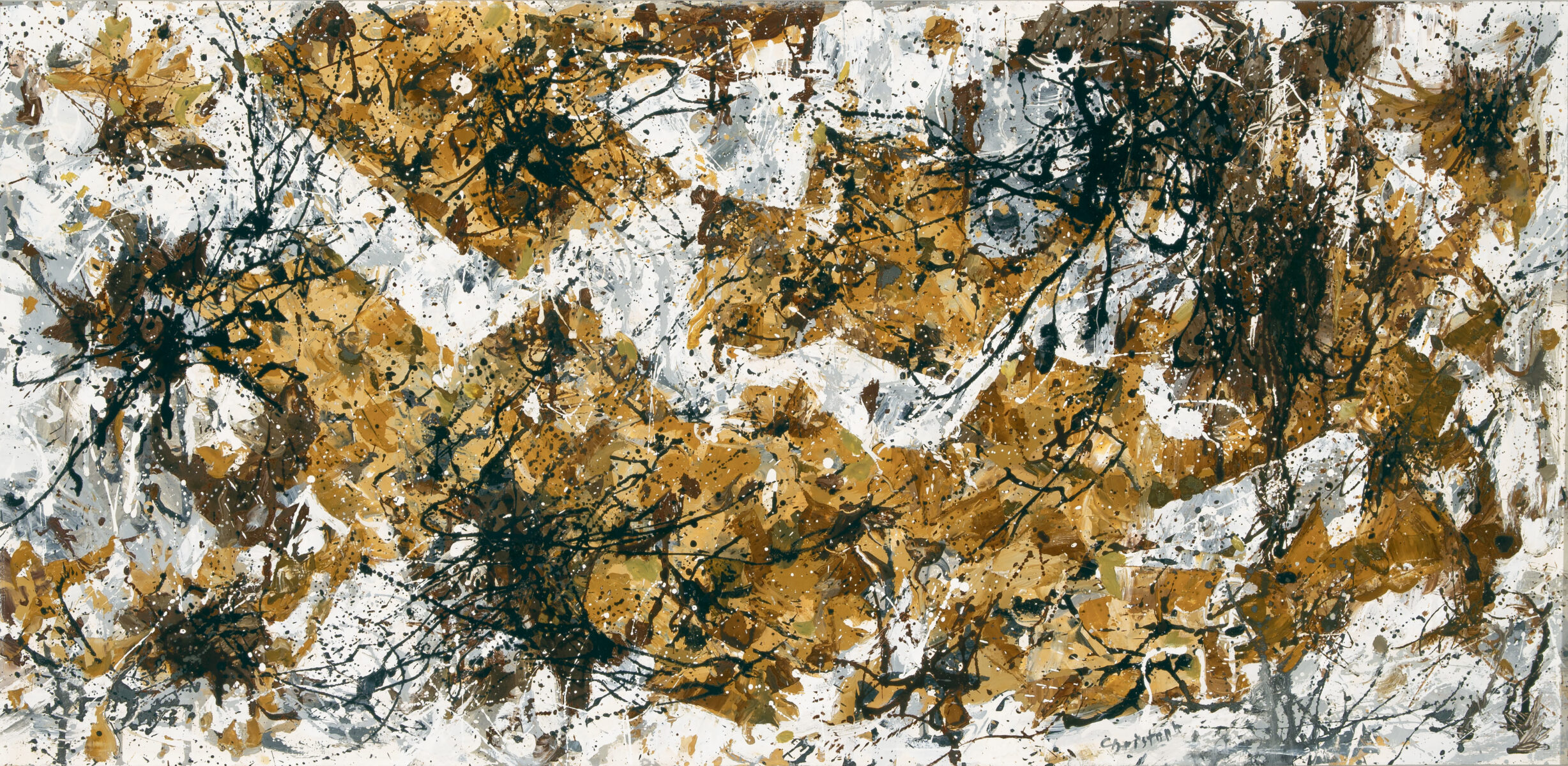 Komposition II C 70. Öl auf Hartfaser. 1970. 42 x 87 cm. Im Künstlerrahmen.