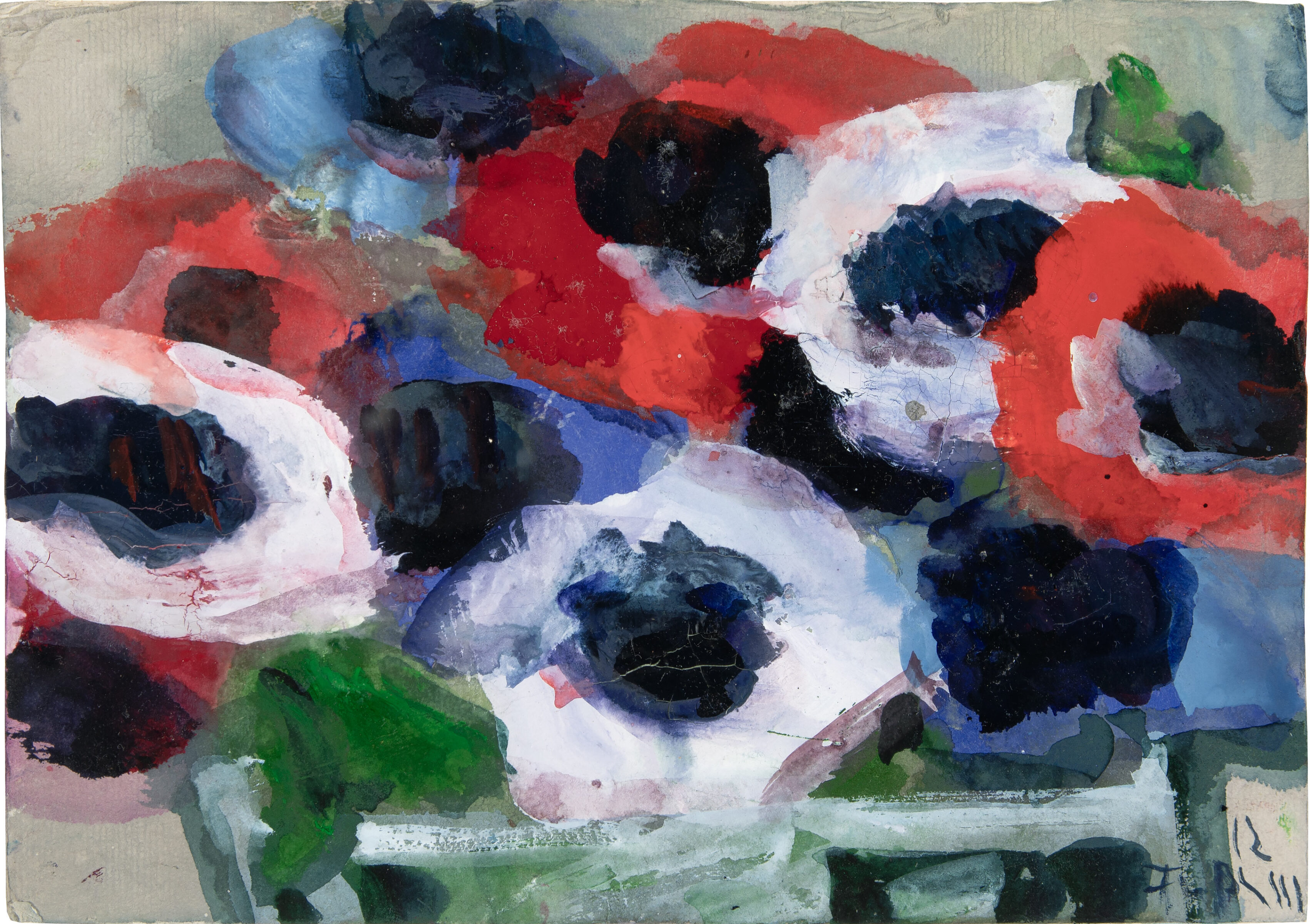 Blumenstilleben. Zwei Blatt. Gouache auf Büttenkarton. 2012/19. 13,7 x 19,5 bzw. 10 x 14,8 cm. Jeweils im Passepartout freigestellt u. unter Glas gerahmt.