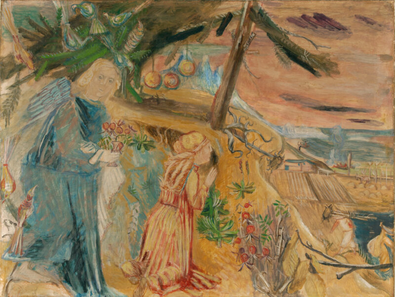 Verkündigung. Bleistift auf chamoisfarbenem Papier. 1921. 50,2 x 66,1 cm, unter Passepartout. Unter Glas gerahmt.
