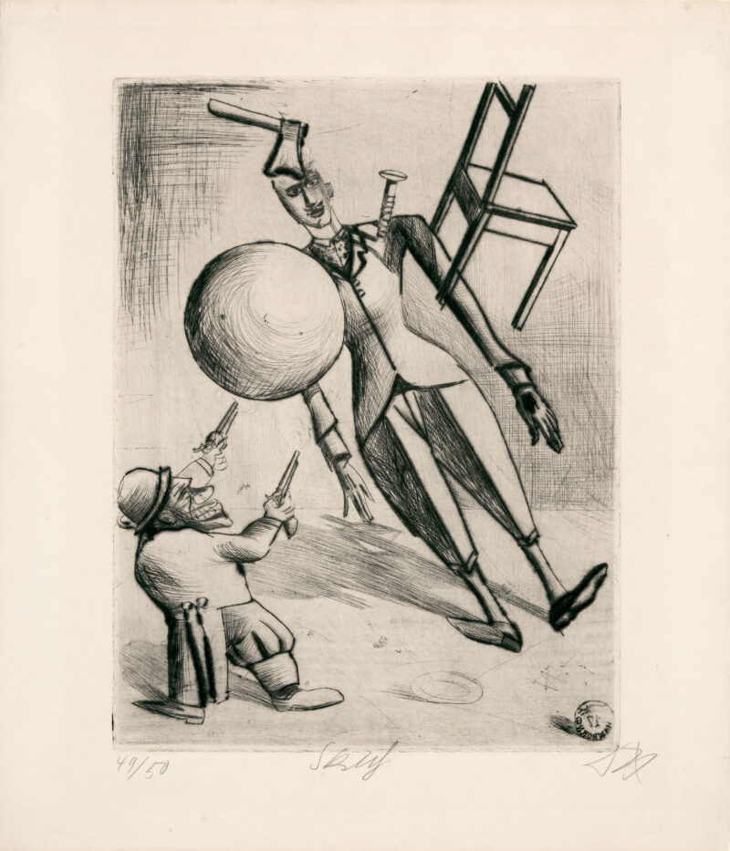 Sketch (Blatt der Mappe "Zirkus"). Radierung auf Kupferdruckkarton. 1922. 39,5 x 29,7 (49,7 x 42) cm, im Passepartout freigestellt. Unter Glas gerahmt.