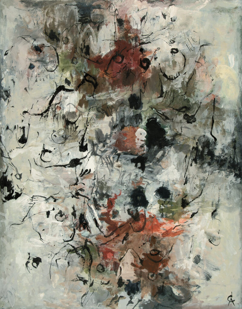 Abstrakte Komposition N° 62/07. Öl auf chamoisfarbenem Karton. 1962. 64 x 50 cm, im Passepartout freigestellt. Unter Glas gerahmt.