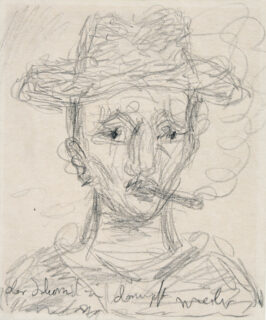 Konvolut von fünf Blatt (Künstlerbildnisse). Vier Bleistift- u. eine Kreidezeichnung auf Papier bzw. leichtem Karton. 1988-93. Von 29 x 20,5 bis 69 x 42,3 cm.