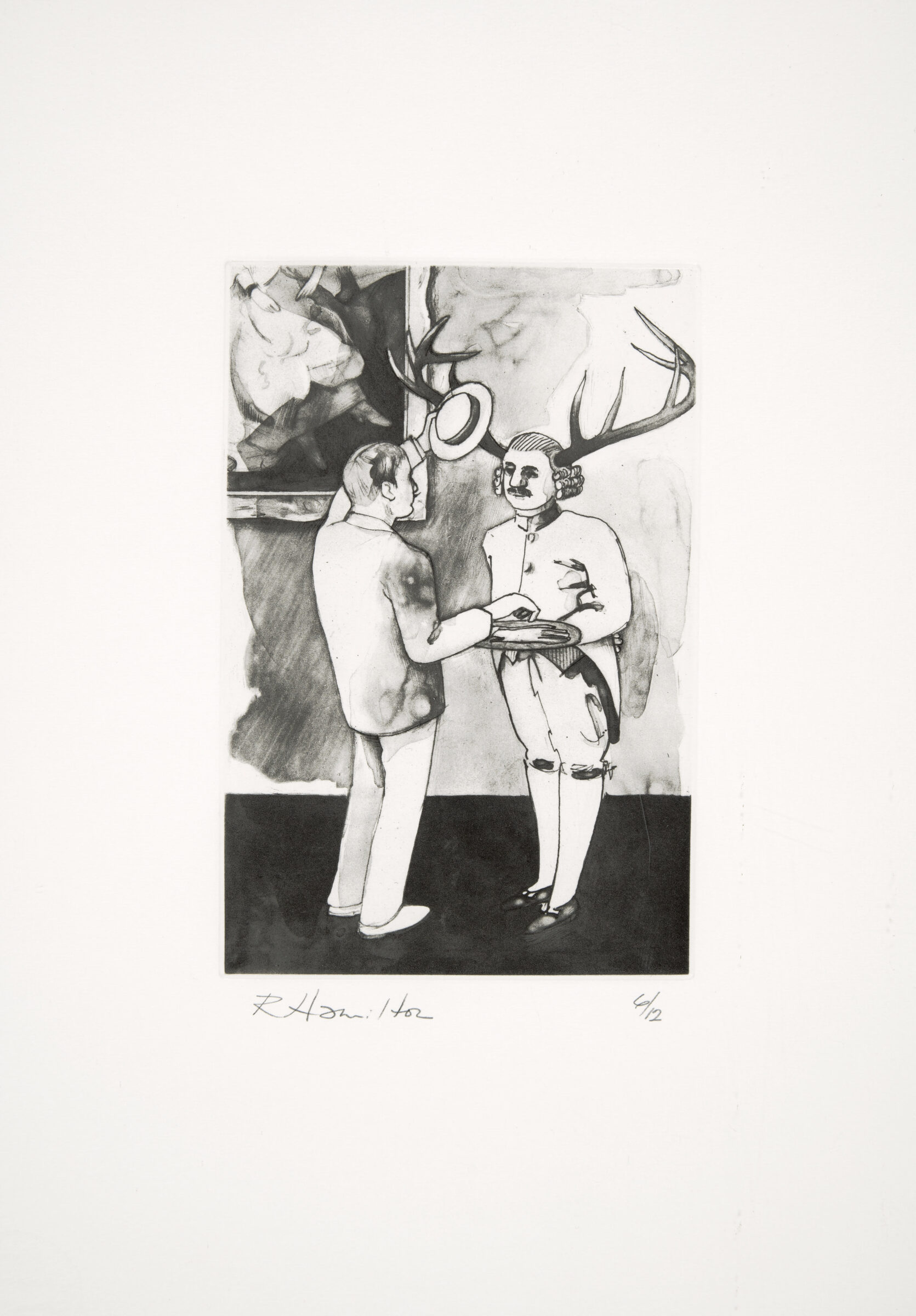 Madame Tweedy is in her bath, sir. Aquatintaradierung auf Hahnemühle Büttenkarton. 1989. 15,7 x 10,3 (52,2 x 32,7) cm. Unter Glas gerahmt.