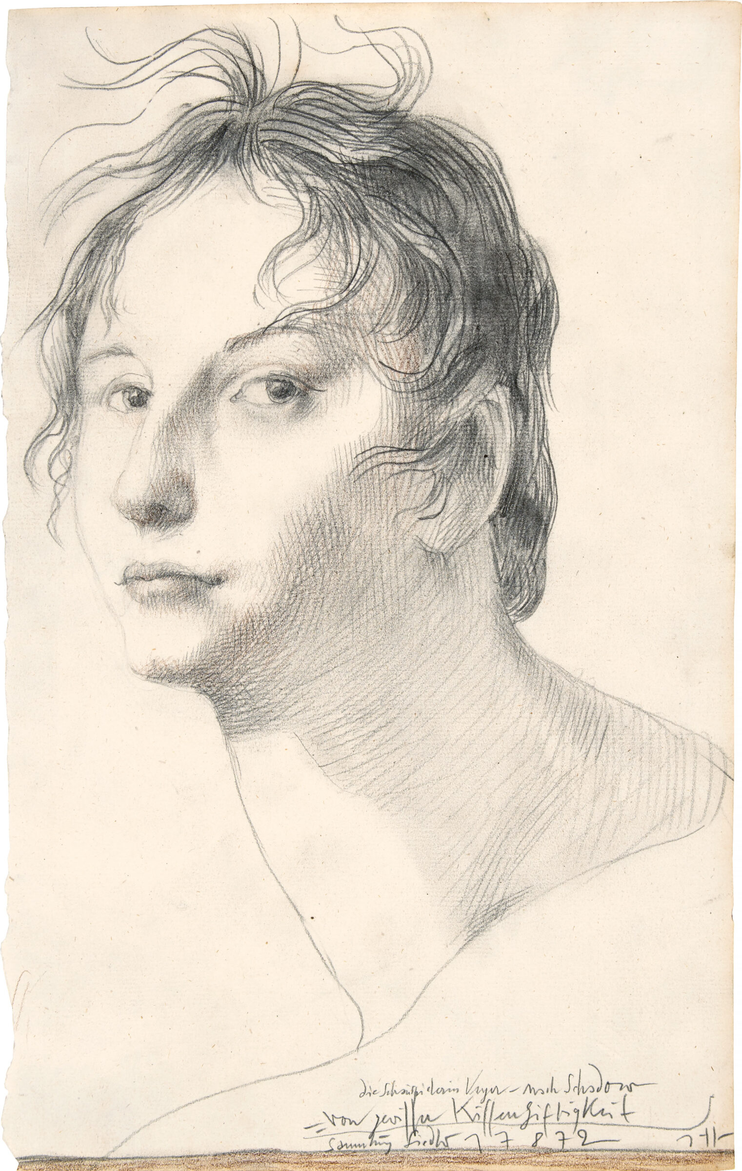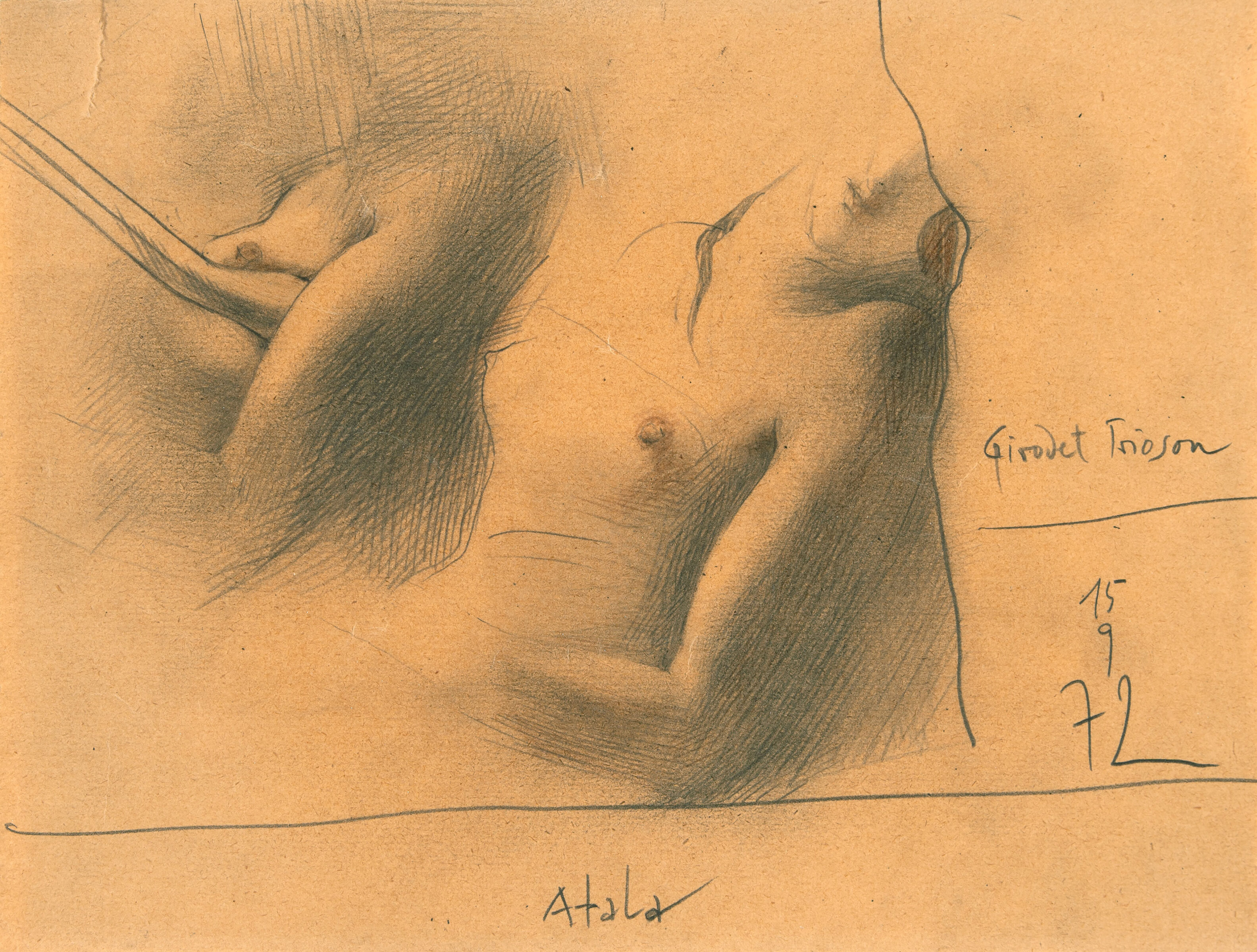 Provenienz: Sammlung Joachim C. Fest, Frankfurt/Main. - Ausgestellt und abgebildet in: Horst Janssen. Hannover, Kestner-Gesellschaft, 1973, Abb. 66, Katalog-Nr. 144. - Vorlage für die Zeichnung war Johann Gottfried Schadows "Porträt der Friederike Unger" von 1807, das sich im Kupferstichkabinett Berlin befindet. - Der obere und rechte Blattrand minimal lichtrandig. - Beigegeben: Derselbe. Atala (nach Girodet Trioson). Bunt- und Bleistift auf braunem Papier. 1972. 16,7 x 22 cm. Datiert (15 9 72) und betitelt. Skizze zum Gemälde "Das Begräbnis der Atala" von Anne-Louis Girodet-Trioson von 1808.