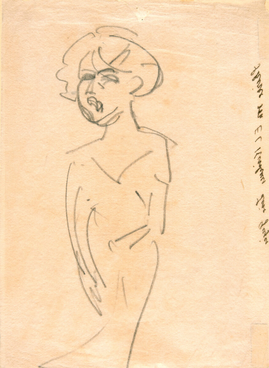 Dame (Sängerin). Bleistift auf Japan. Um 1922. 23,3 x 17 cm, unter Passepartout. Unter Glas gerahmt.