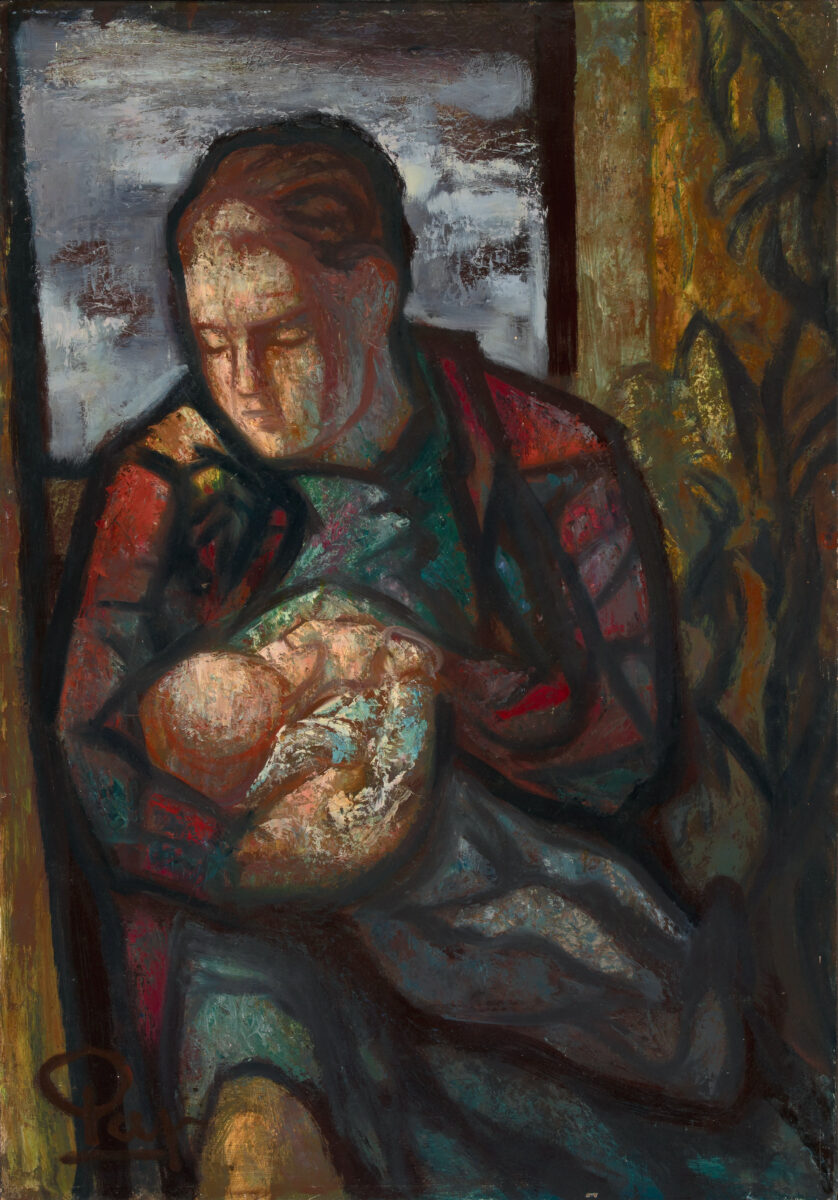 Stillende Mutter. Öl auf Hartfaser. 1950. 103,2 x 72,3 cm. Gerahmt.