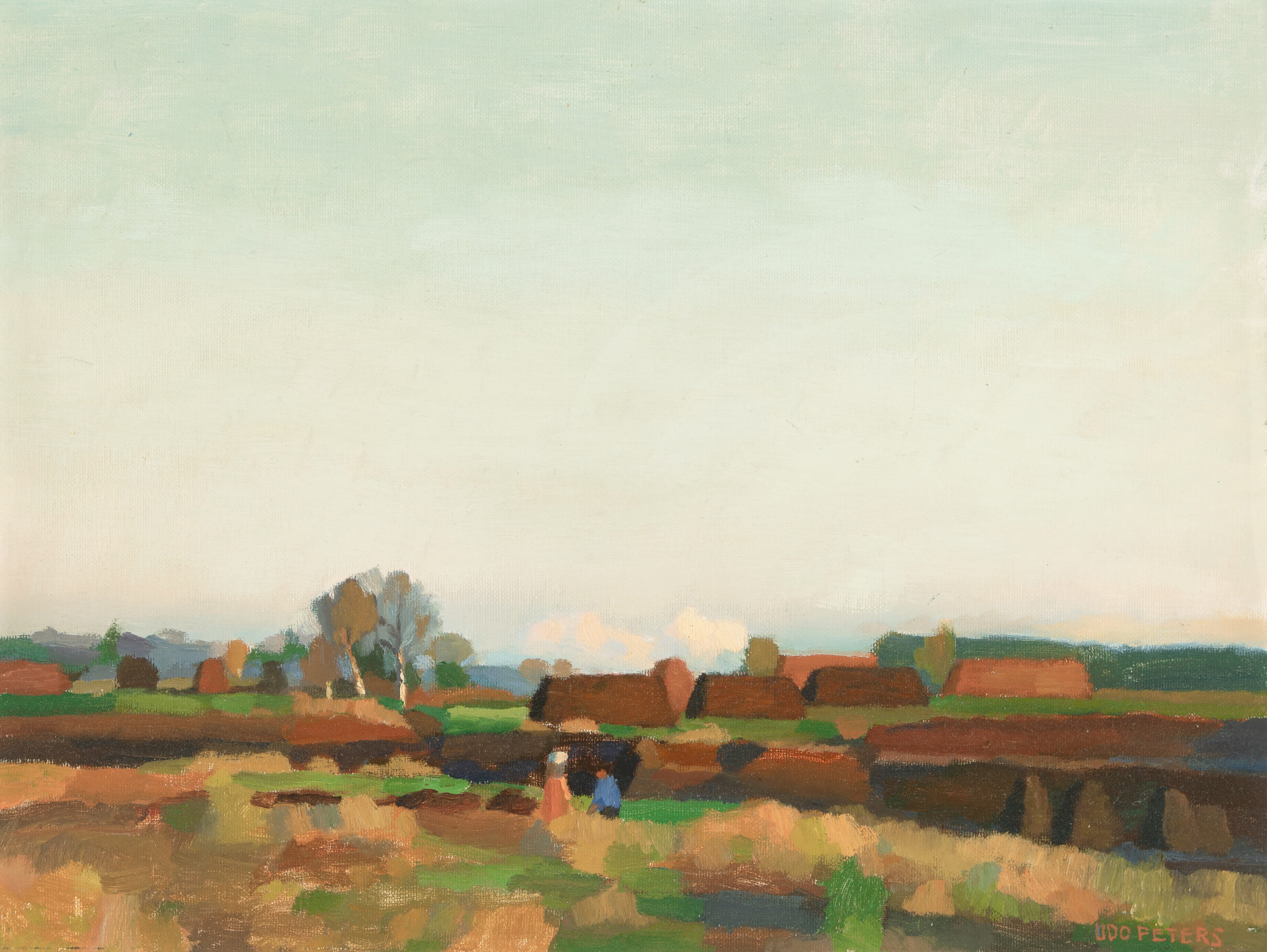 o.T. (Worpsweder Landschaft). Öl auf Hartfaser. 40,5 x 53,2 cm. Gerahmt.