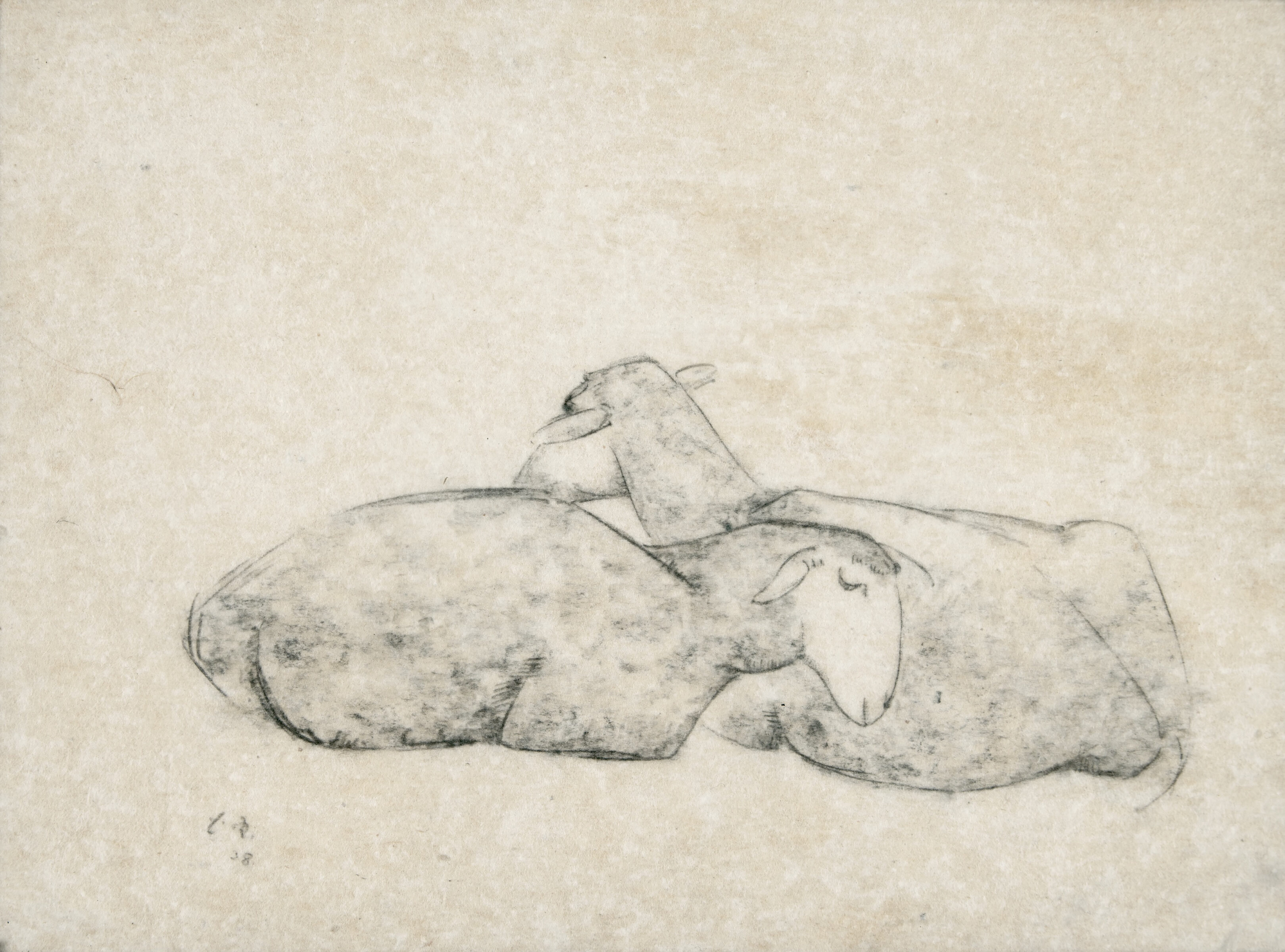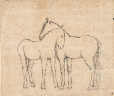 Zwei Pferde - Ruhende Schafe. Zwei Blatt. Schwarze Kreide auf Vliespapier. 1938. 20,3 x 24,2 bzw. 18 x 24,1 cm, jeweils unter Passepartout.