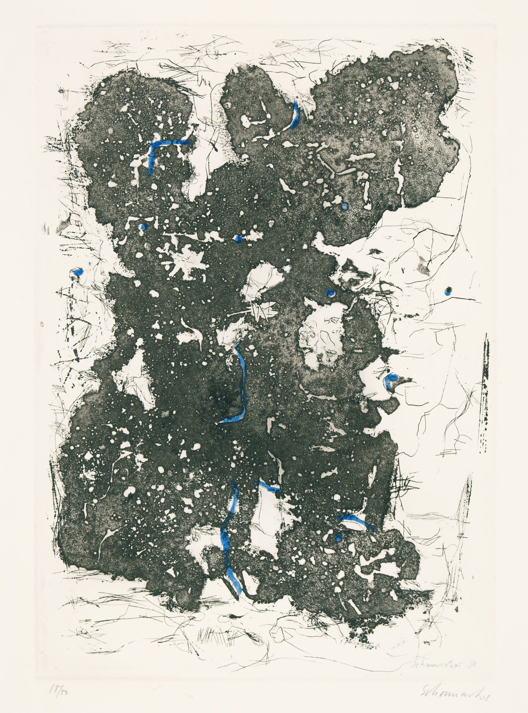 Nicht bei Franzke/Cavadini - Abgebildet in: Albert Schiessel, Emil Schumacher. Die frühe Druckgraphik aus dem Abstracta-Verlag, Freiburg 1987, Abb. 1.
