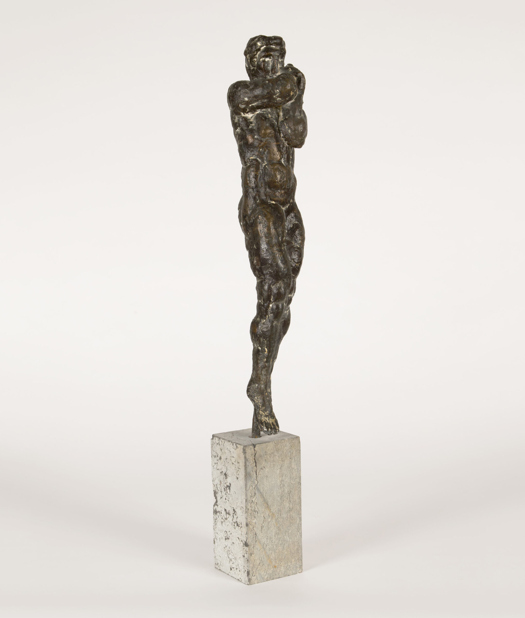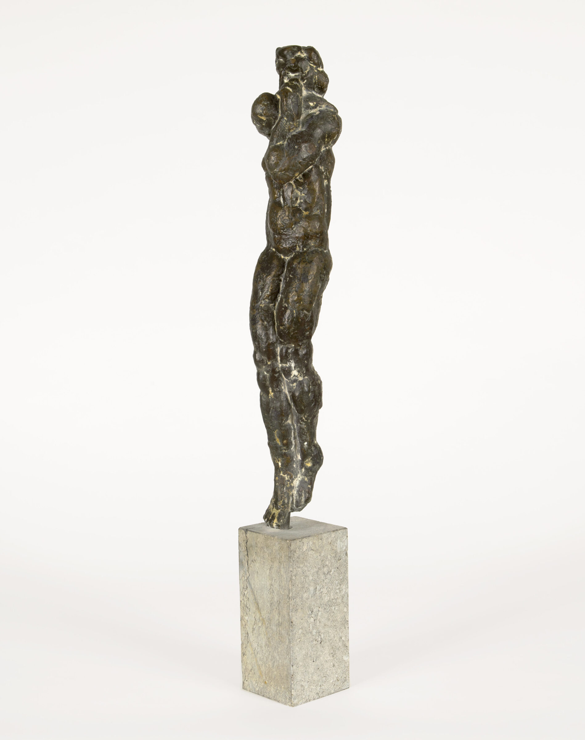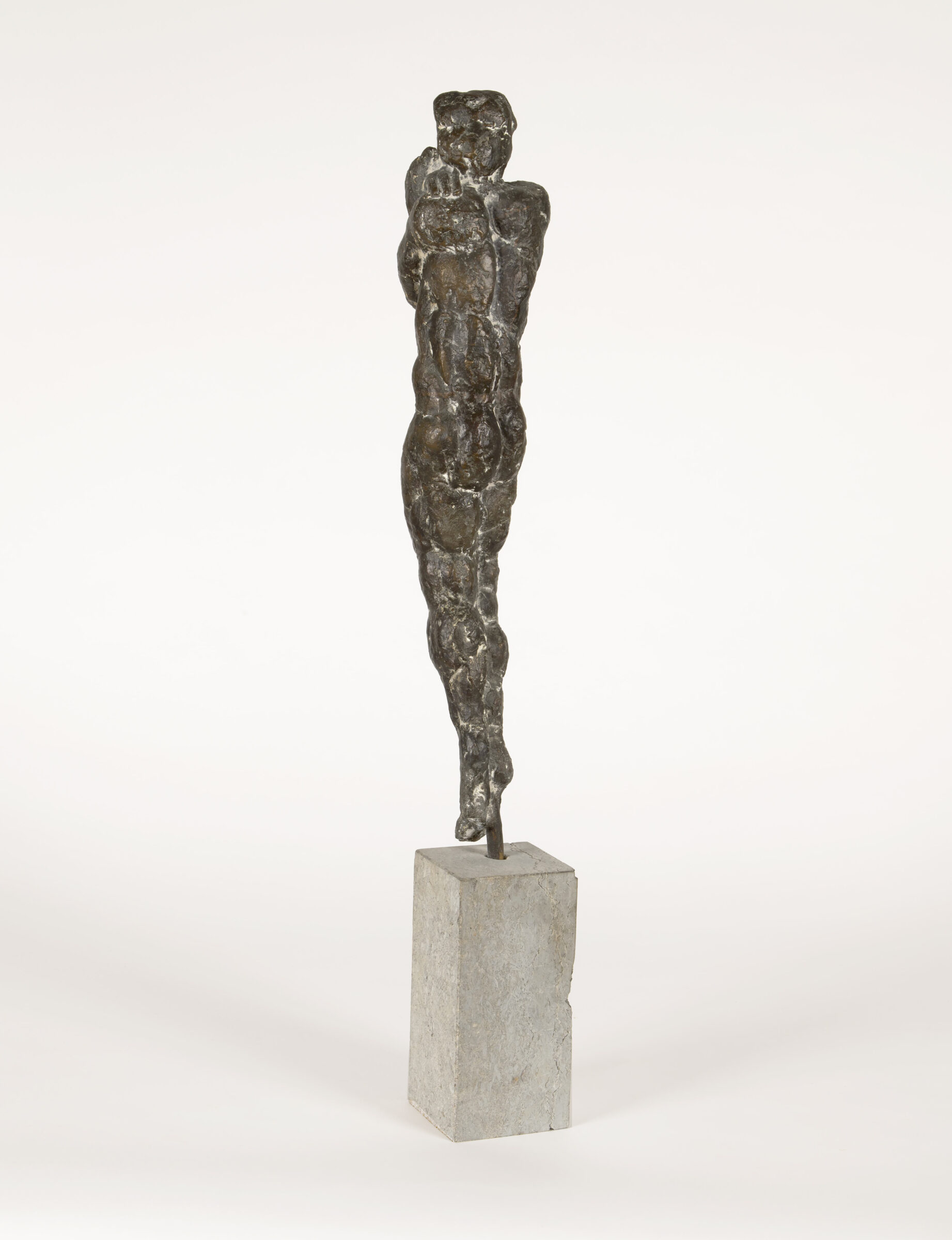 Große Stürzende. Bronze mit dunkelbrauner Patina. 1970. 59 x 12 x 11 cm. Auf Steinsockel (21 x 10 x 10 cm).