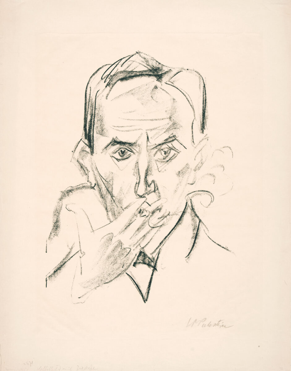 Raucher (Selbstbildnis). Lithographie auf Japan. 1916. 40 x 30,5 (59,5 x 46,3) cm, unter Passepartout.