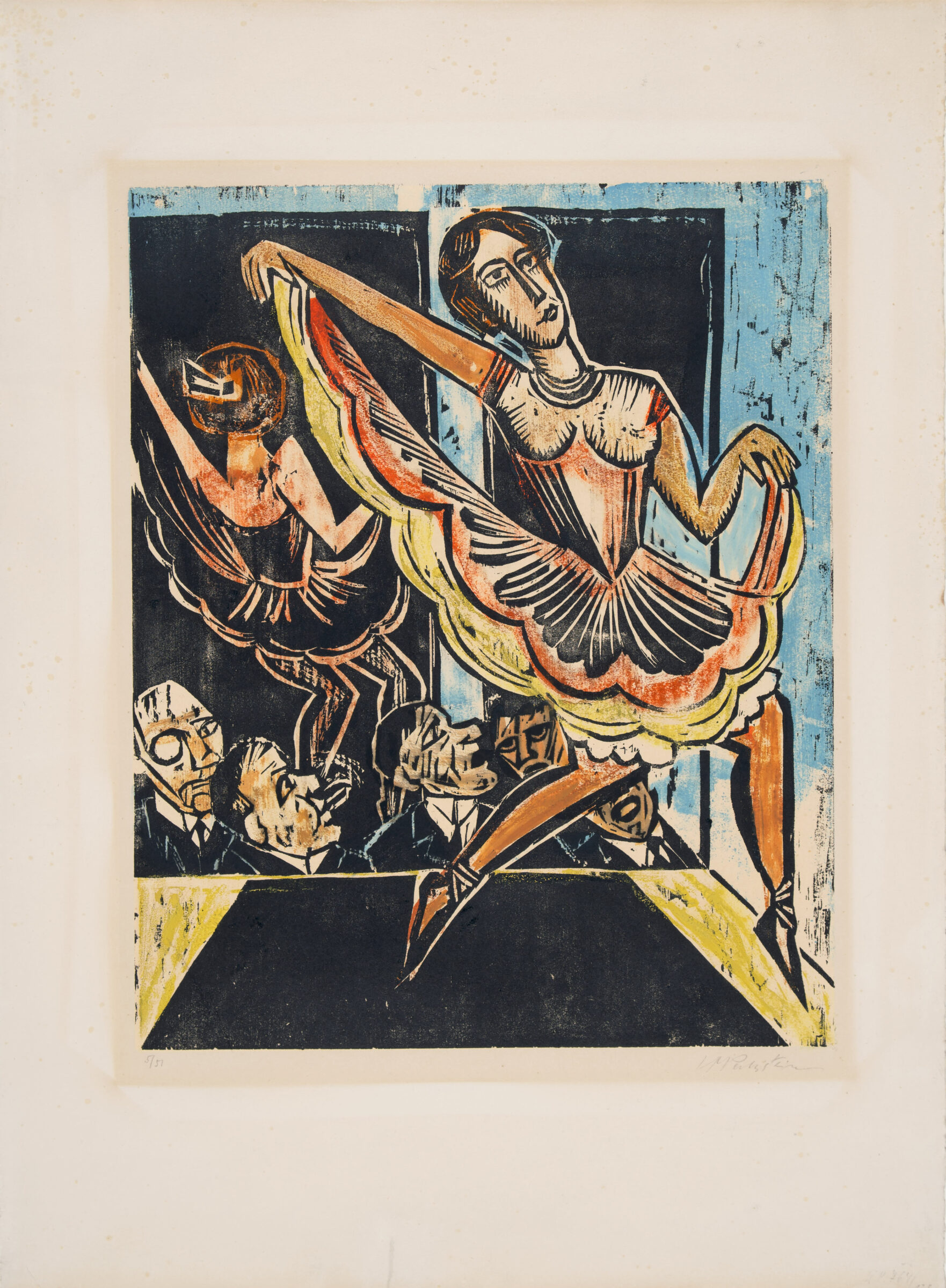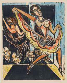 Tänzerin im Spiegel. Farbholzschnitt u. Aquarell auf festem Büttenkarton. 1923. 49,6 x 40,3 (73,6 x 54) cm, unter Passepartout. Unter Glas gerahmt.