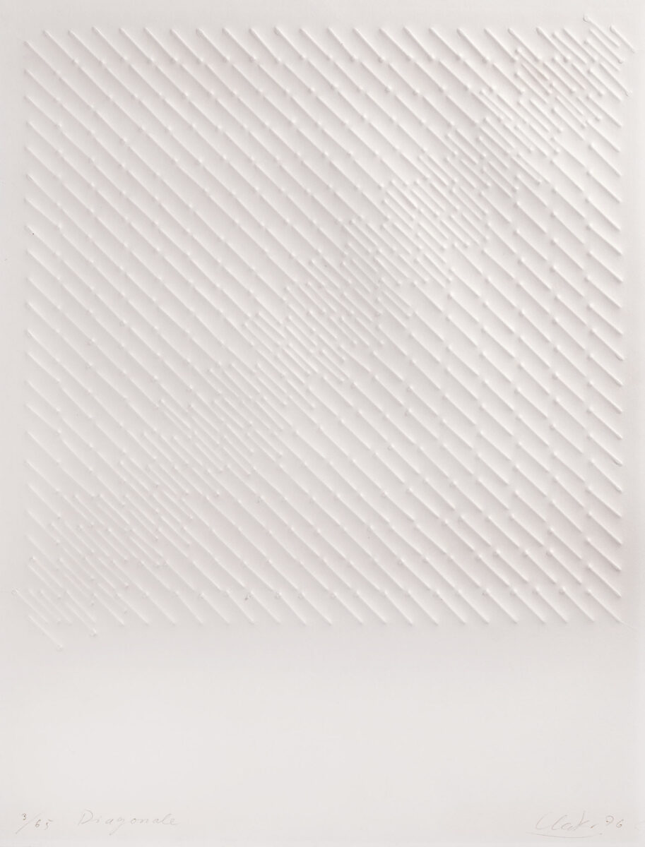 Diagonale. Prägedruck auf Büttenkarton. 1976. 48,5 x 46,5 (64,8 x 49,7) cm.