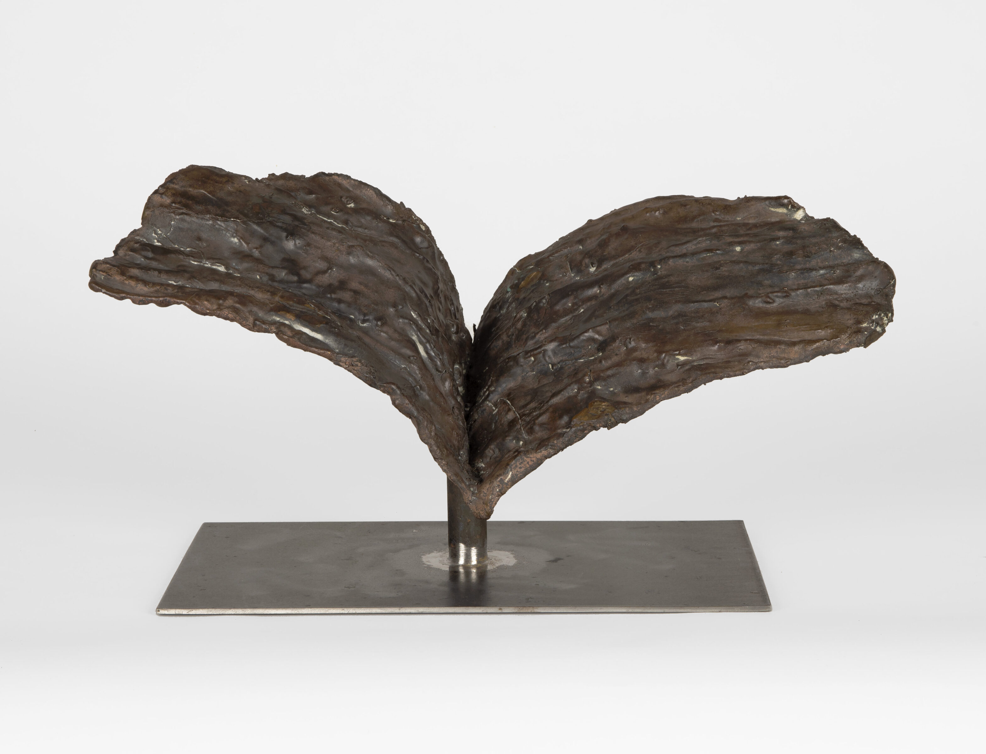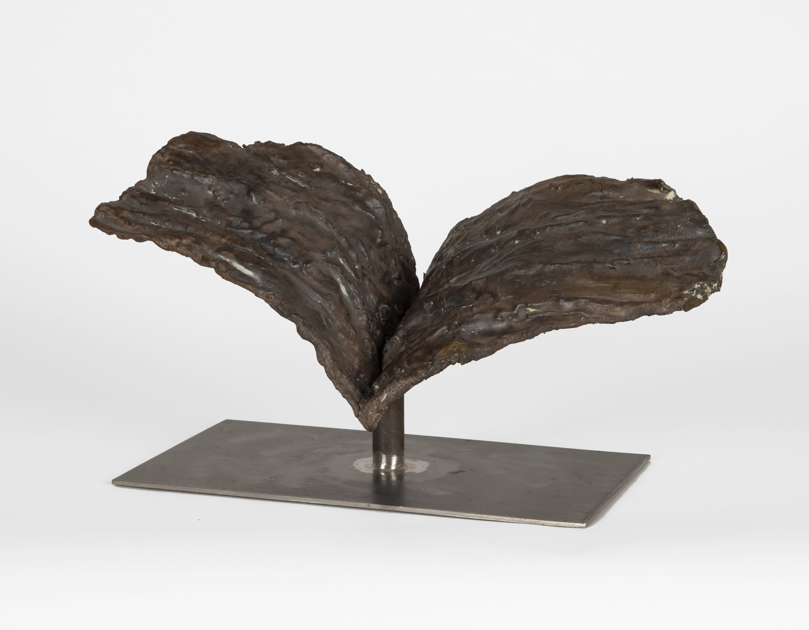 Beflügelt. Bronze mit brauner Patina auf geschweißter Stahlplinthe. 2011. 26,3 x 49,5 x 22 cm.