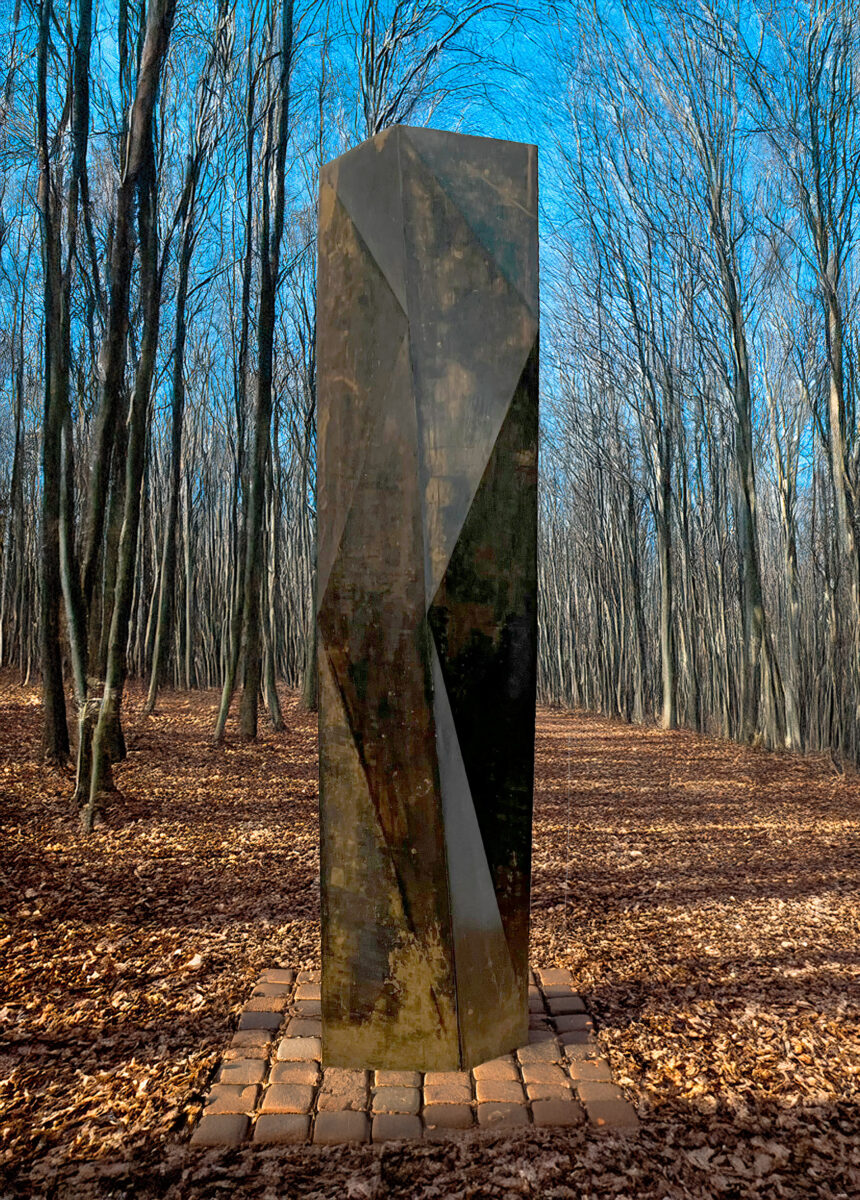 o.T. (Große Figur). Bronze mit schwarzbrauner Patina, geschweißt. 1989. 199 x 40 x 47 cm.
