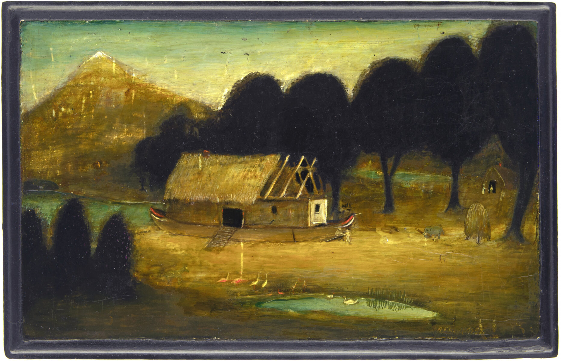Litt 53-19 - Verso auf einem Etikett mit der Nummer "36/765" versehen. - Als Autodidakt, der erst spät zur Malerei fand, entwickelte Albert Ebert eine eigenständige Bildsprache, die sich dem offiziellen sozialistischen Realismus entzog und stattdessen eine märchenhafte, introspektive Welt entfaltete. Geprägt von Erinnerungen und Träumen überführte Ebert auch religiös-mythologische Motive in eine naive, aber keineswegs einfältige Bildwelt. Die Arche Noah erscheint hier nicht als majestätisches biblisches Schiff, sondern als ein bescheidenes, strohgedecktes Haus mit teils noch offenem Dachstuhl, gleich einem Bauernhof in einem märchenhaften Landstrich. Die Perspektive sowie die kindlich anmutenden Größenverhältnisse sind typisch für Eberts Stil. Doch hinter dieser scheinbaren Einfachheit verbirgt sich eine tiefere Bildpoesie: Der Akt des Bauens wird hier zur Metapher für Hoffnung, Rettung und Glauben - nicht nur im religiösen, sondern auch im existenziellen Sinne der Nachkriegszeit, in der das Werk geschaffen wurde. In einer Welt, die gerade erst aus den Trümmern des Zweiten Weltkriegs hervorgegangen war, ist die Arche nicht nur ein biblisches Motiv, sondern zugleich Symbol des Wiederaufbaus, der Zuflucht und der Bewahrung des Lebens. - Minimales Craquelé.