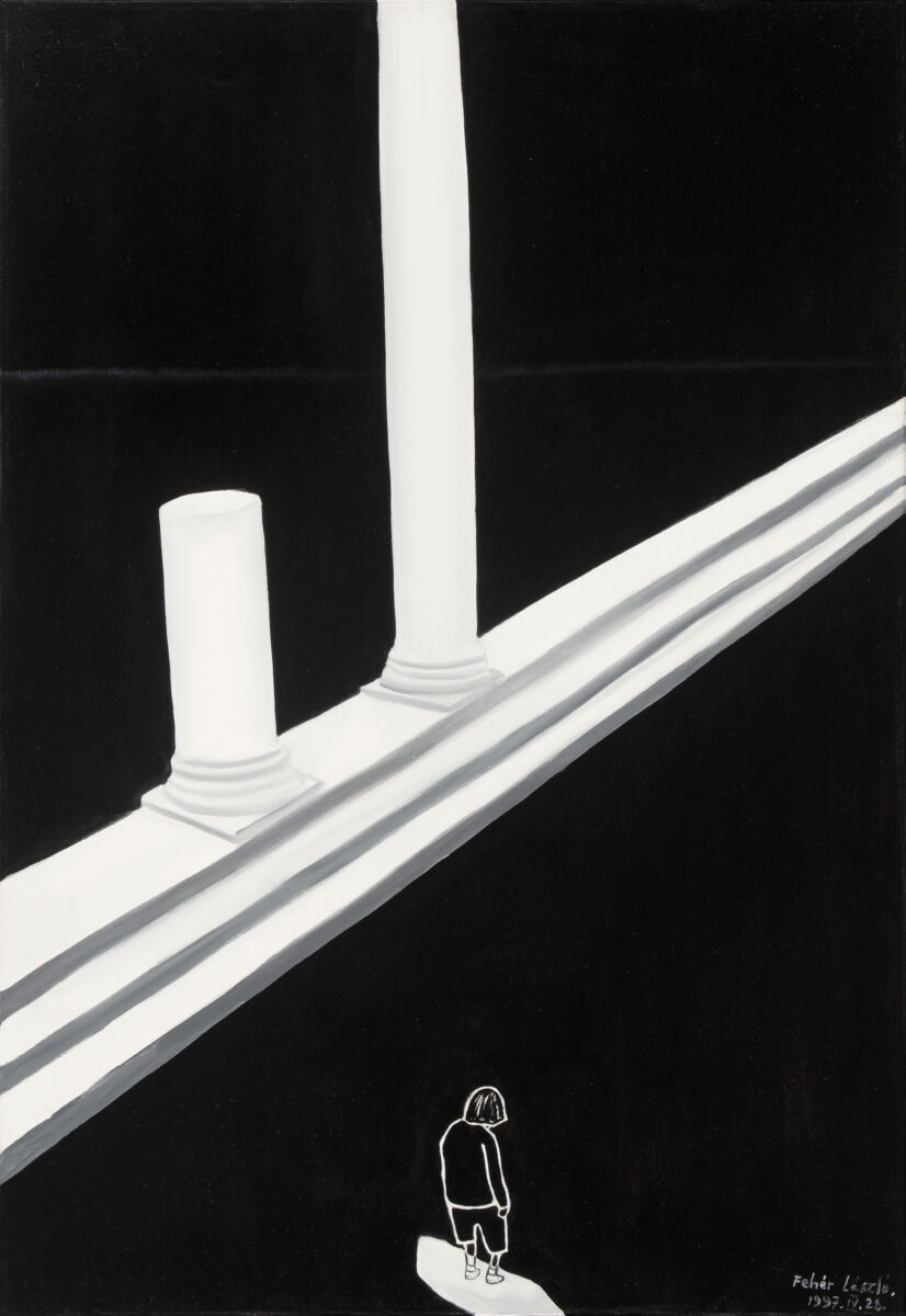 Kind vor antikem Tempel (aus der "Rom-Serie"). Öl auf Leinwand. 1997. 100 x 70 cm. Gerahmt.