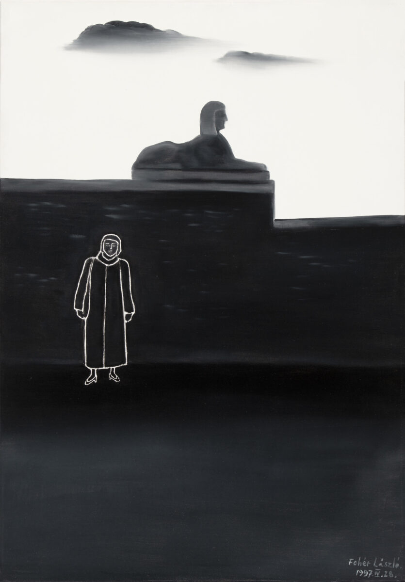 Frau vor Sphinx (aus der "Rom-Serie"). Öl auf Leinwand. 1997. 100 x 70 cm. Gerahmt.