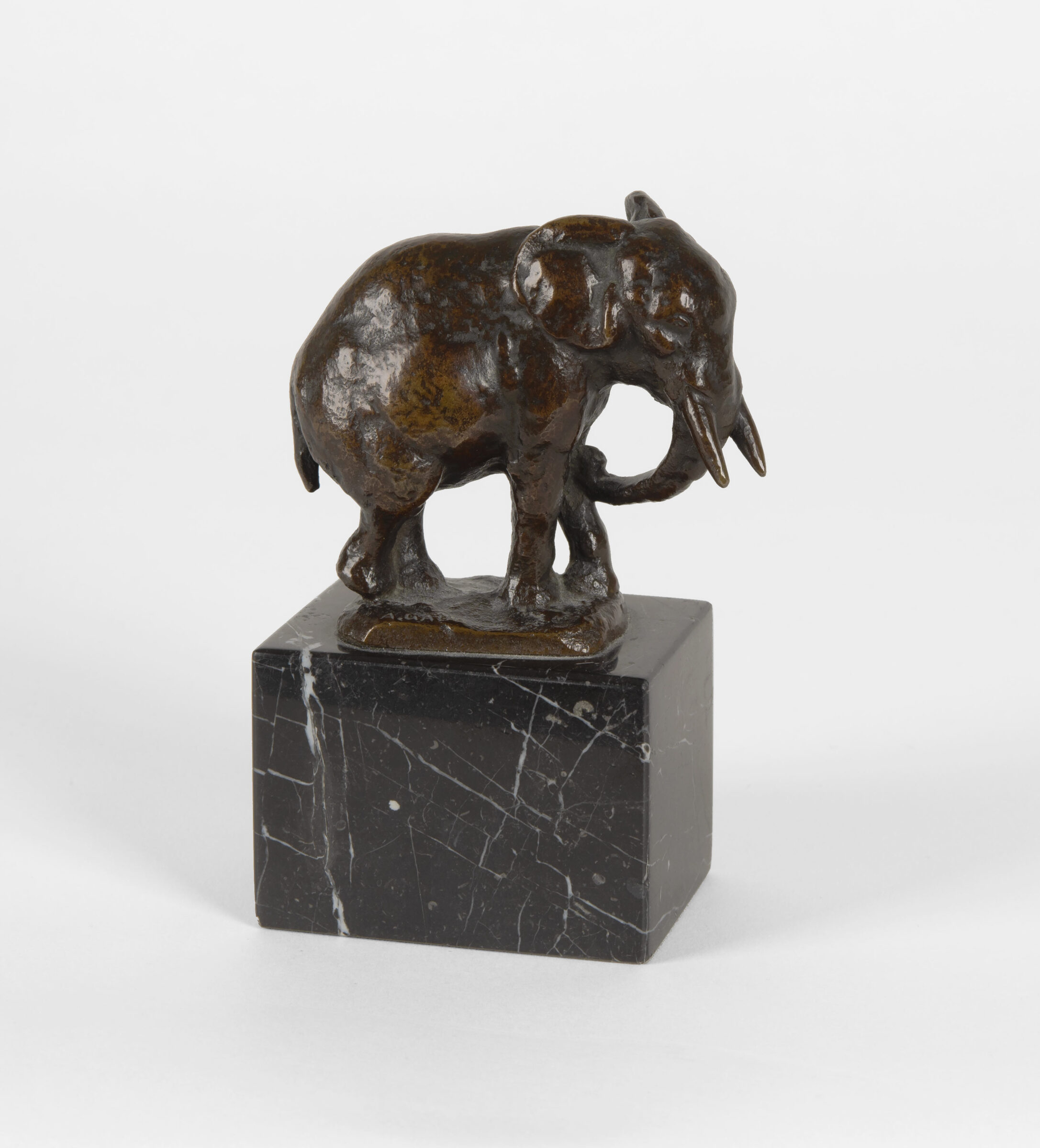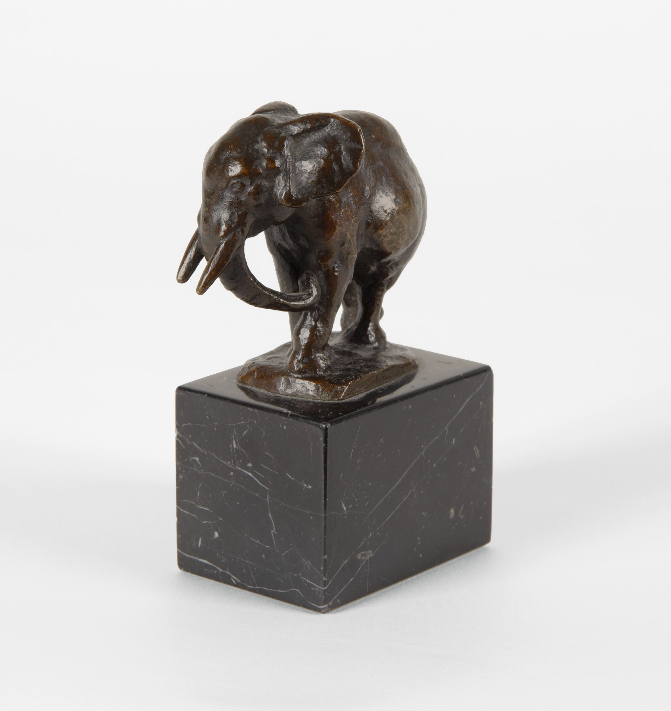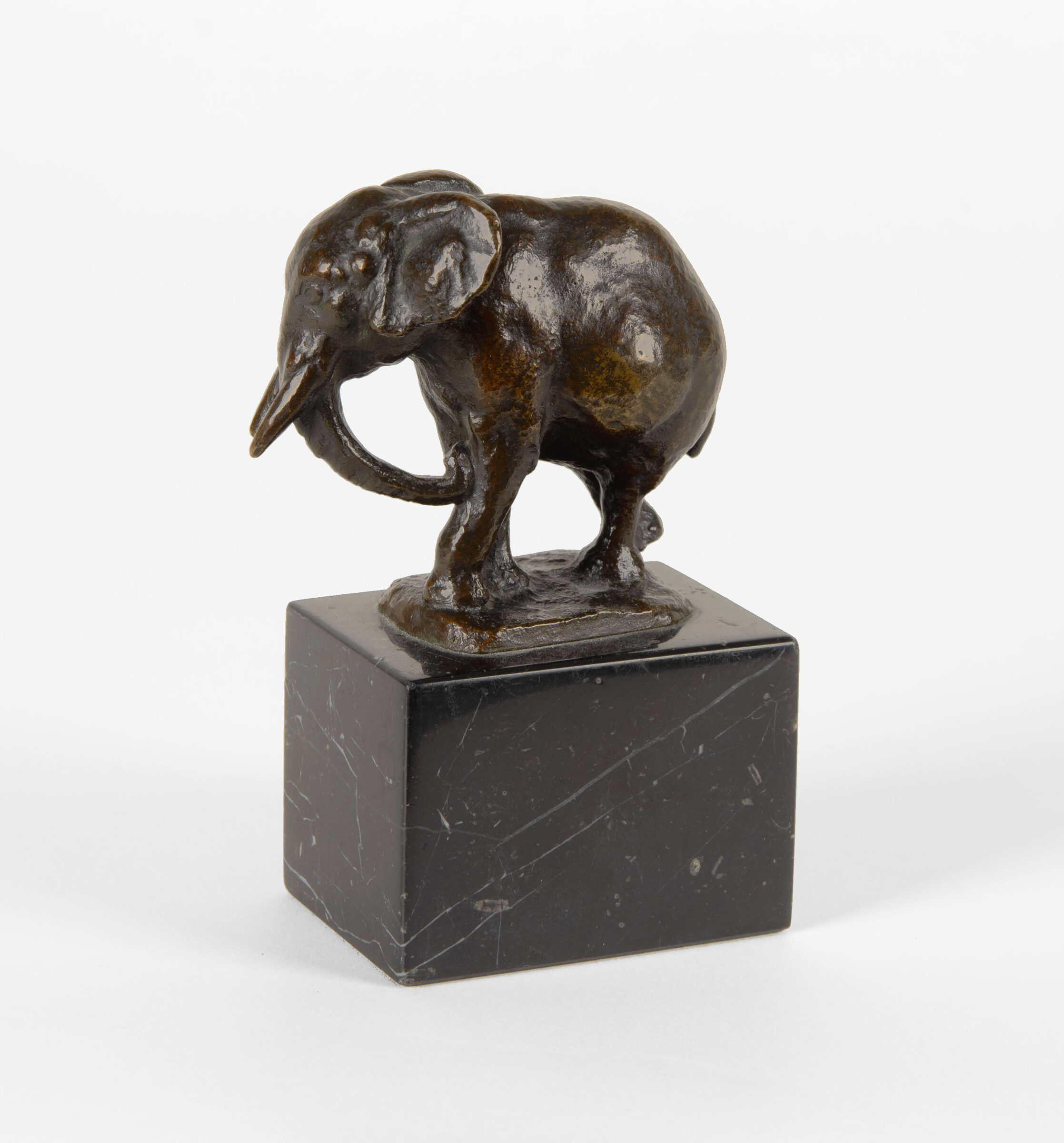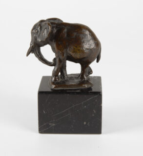 Elefant. Bronze mit dunkelbrauner Patina. 1915. 6,5 x 7,2 x 3,2 cm. Auf Marmorsockel (Höhe: 4,5 cm).