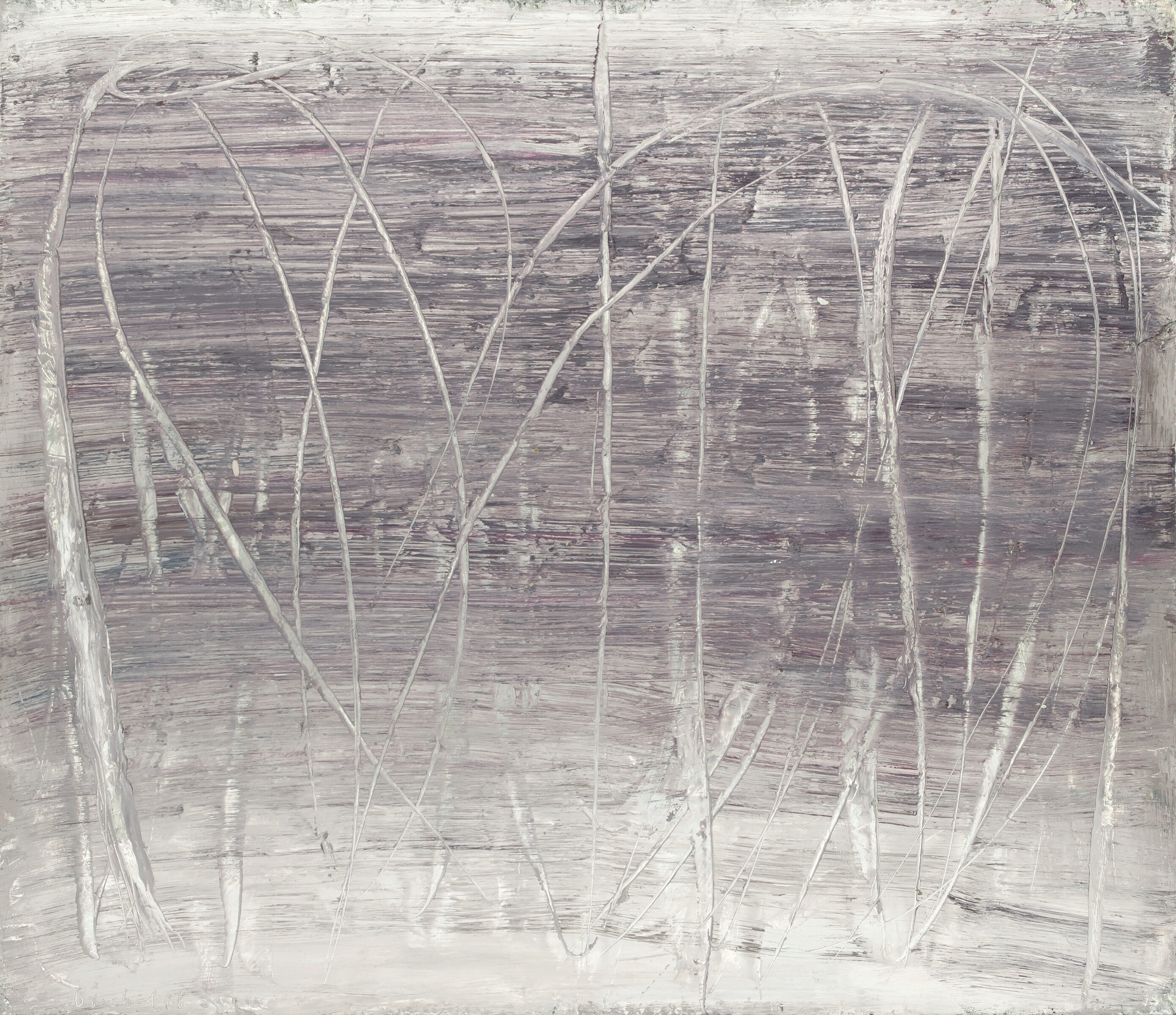 o.T. (Violette Strukturen). Öl auf Leinwand. 1986. 65,5 x 75 cm. In Aluminiumleiste gerahmt.