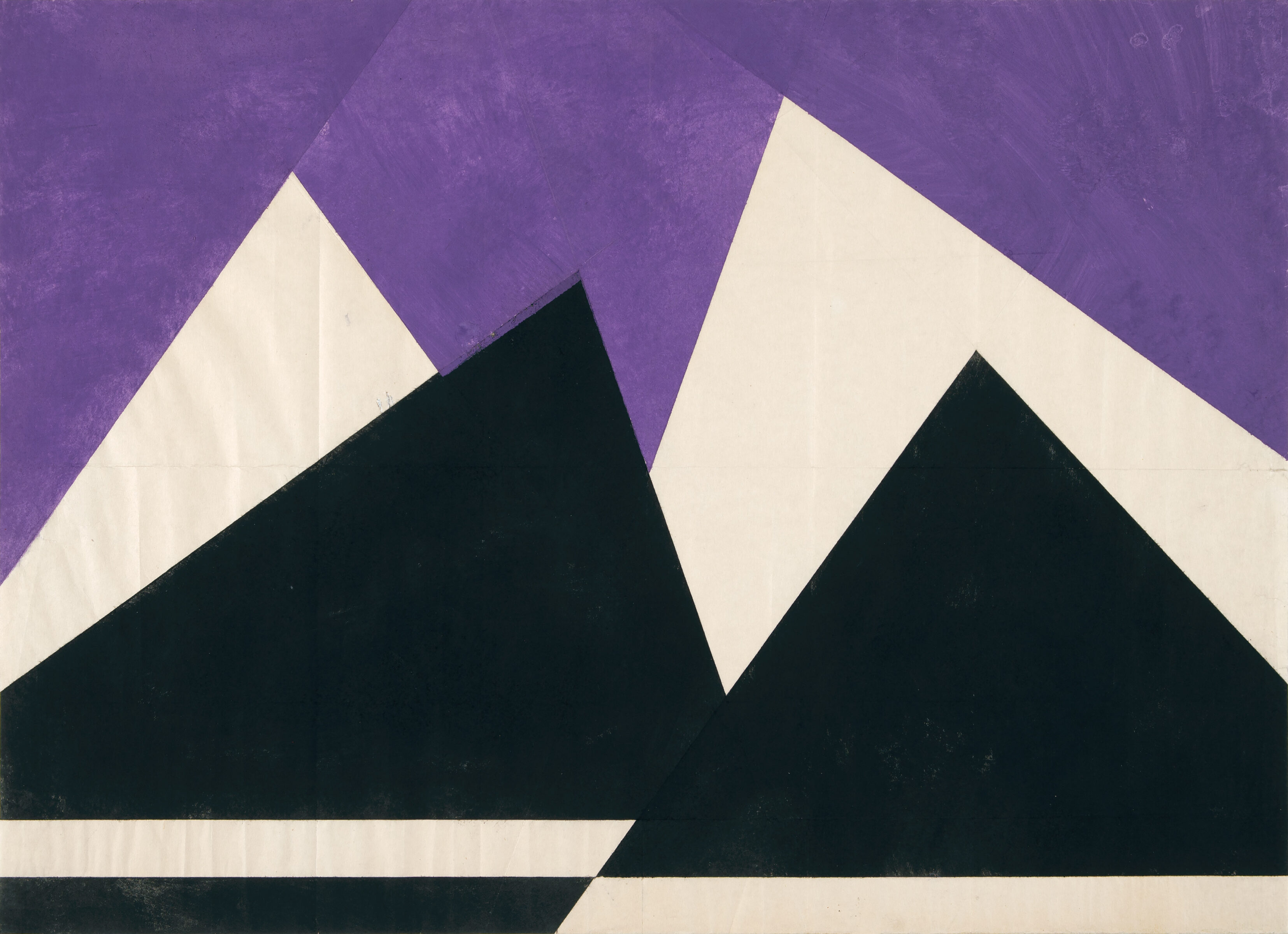 Schwarzweiße Aufgipfelung vor Violett. Kaseintempera über Faltung auf Japan. 1974-77. 50,3 x 71 cm.