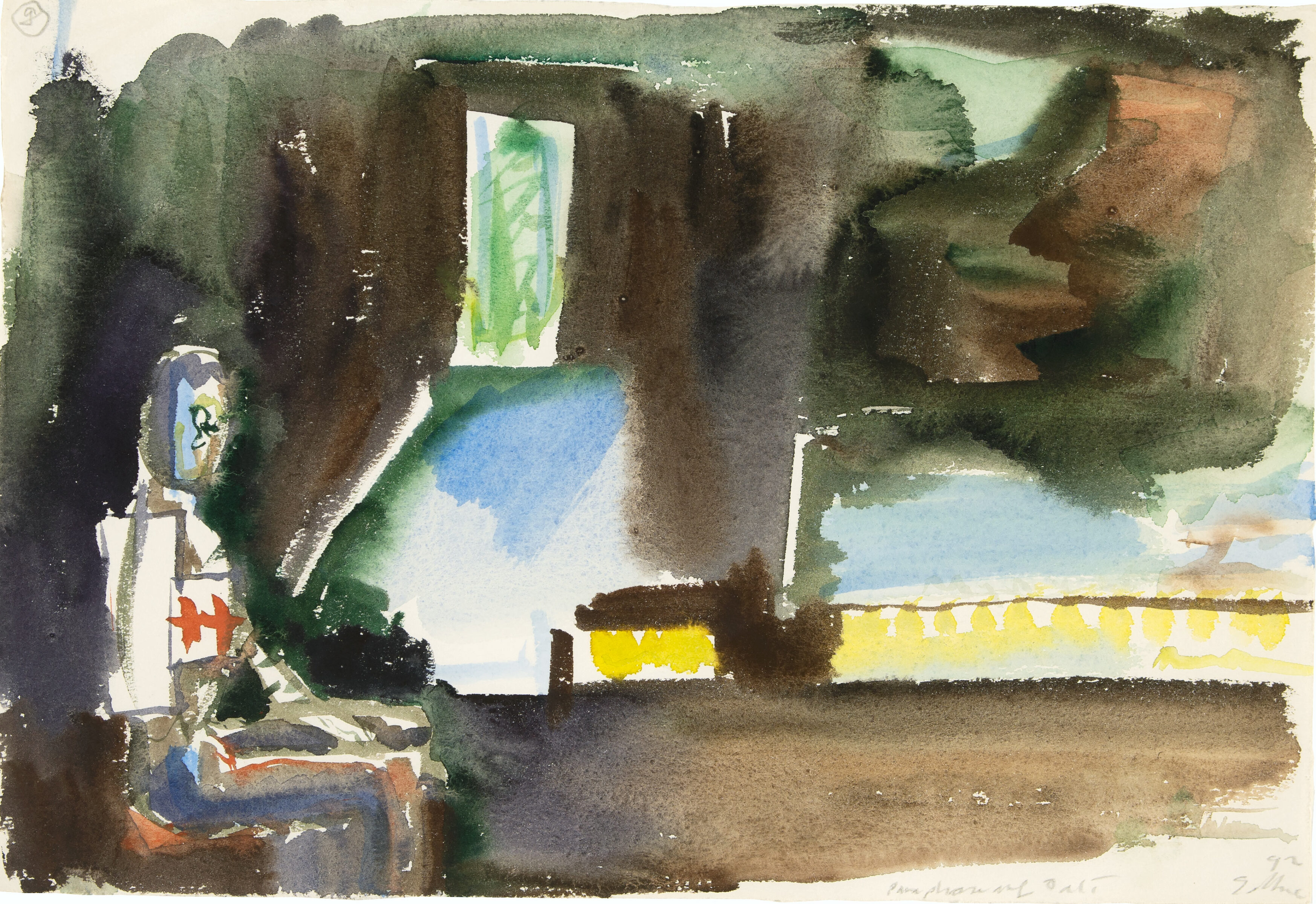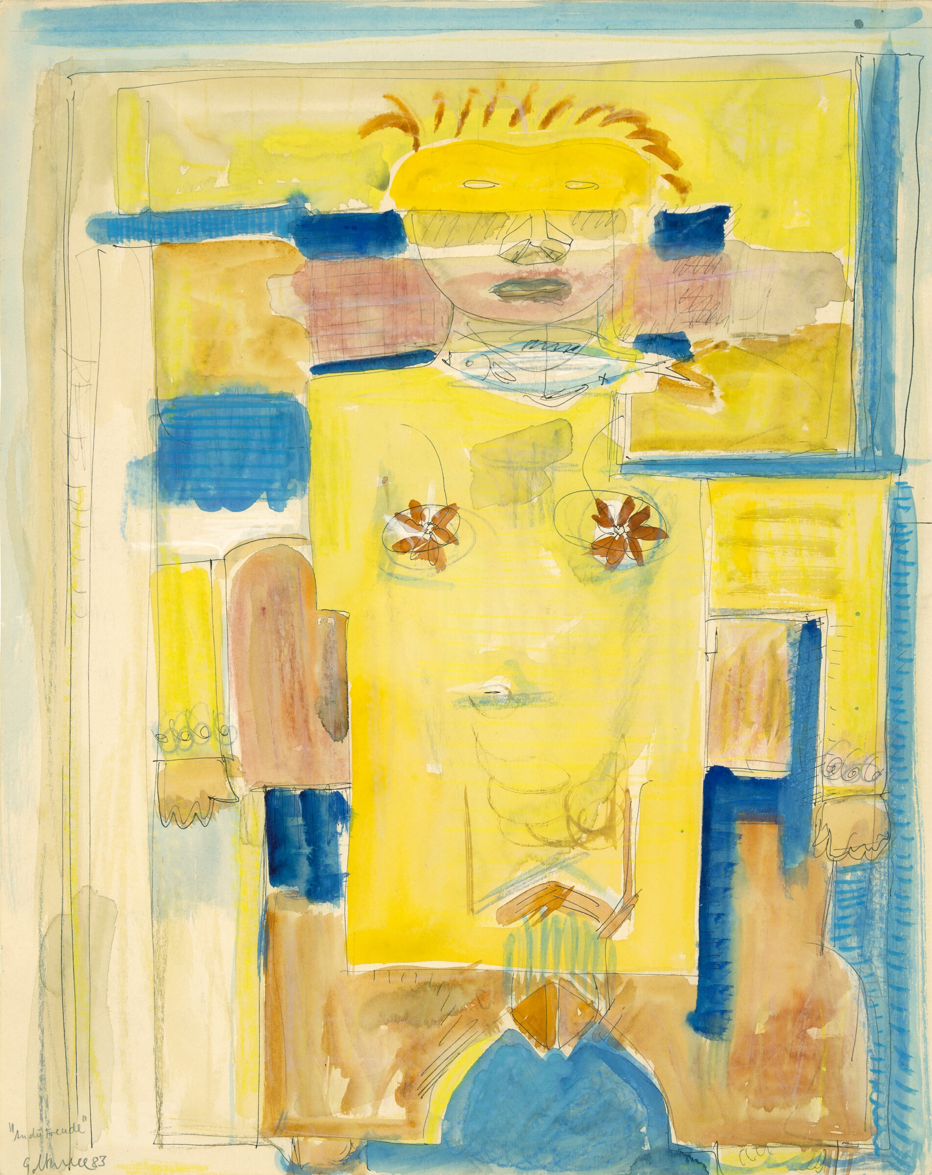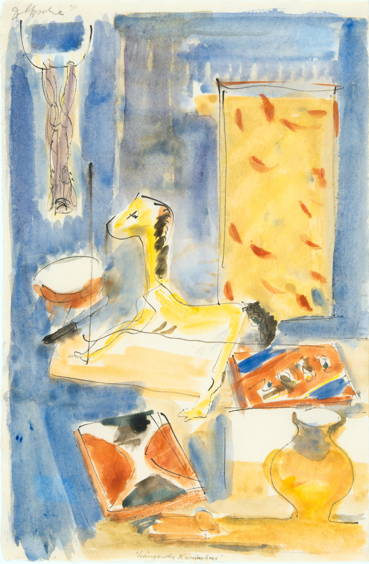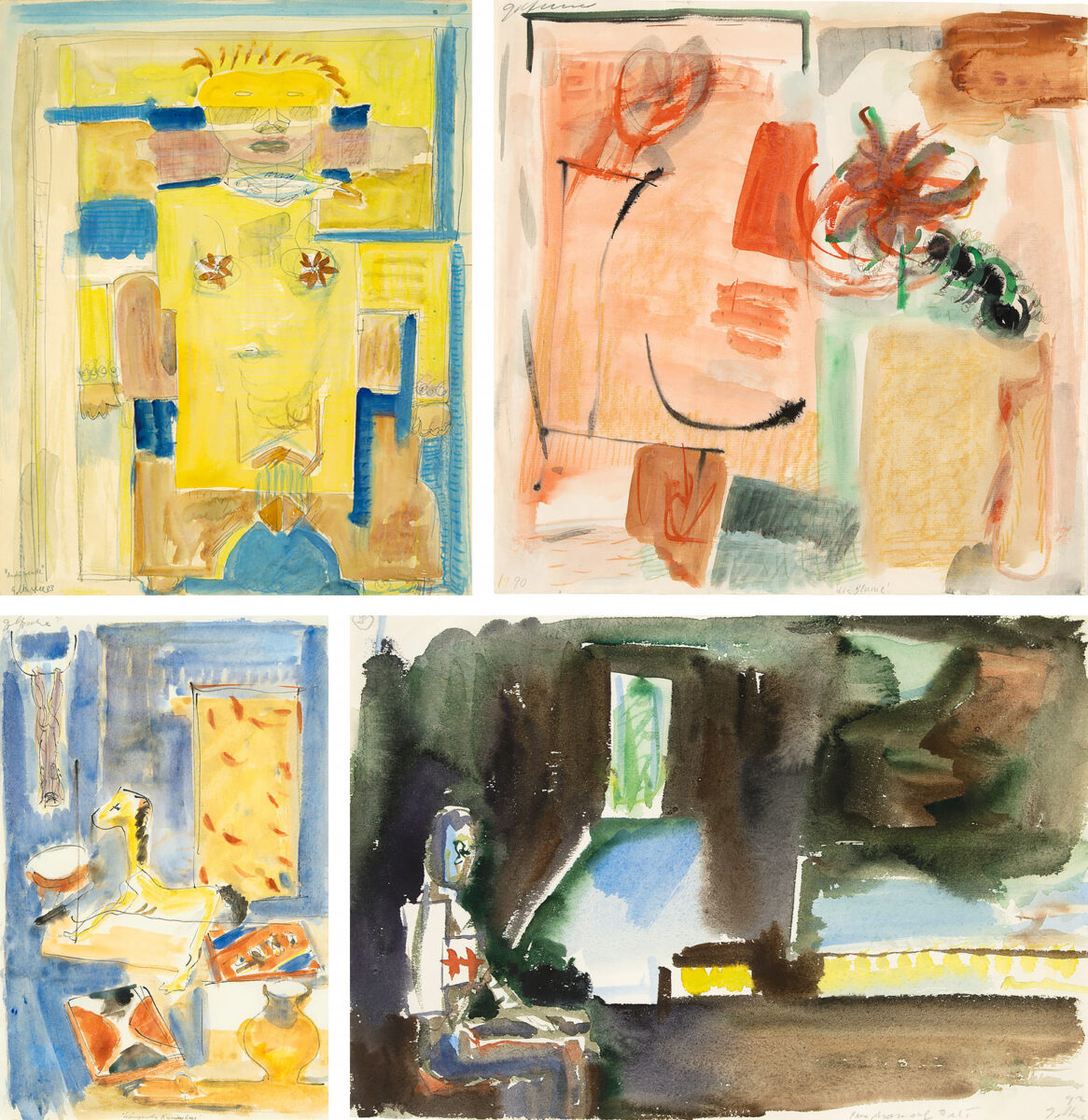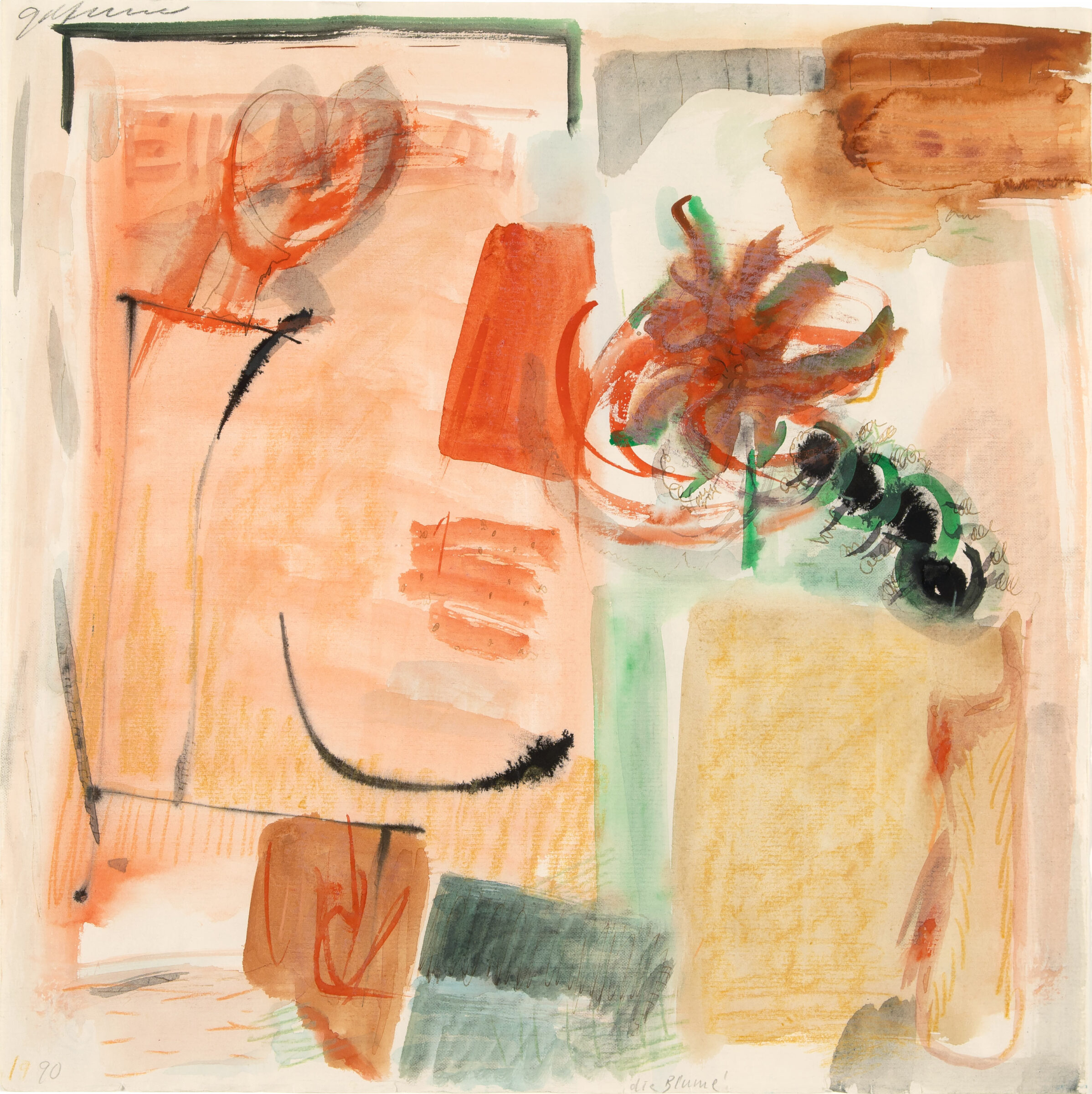 An die Freude - Die Blume - Hängendes Kaninchen - Paraphrase auf Dalí. Vier Blatt Mischtechniken (Aquarell, Feder in Tusche, Kreide) auf leichtem Karton. 1983-92. Von 26,5 x 39,2 bis 50 x 39,8 cm. Jeweils im Passepartout freigestellt u. unter Glas gerahmt.