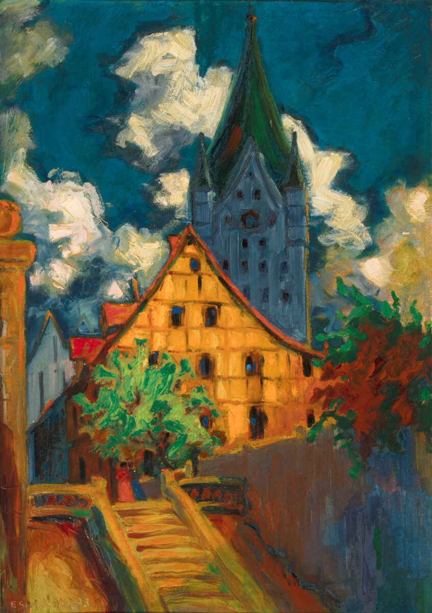 Aus Paderborn (Dom). Öl auf Schichtholz. 1923. 68,5 x 48,7 cm. Gerahmt.