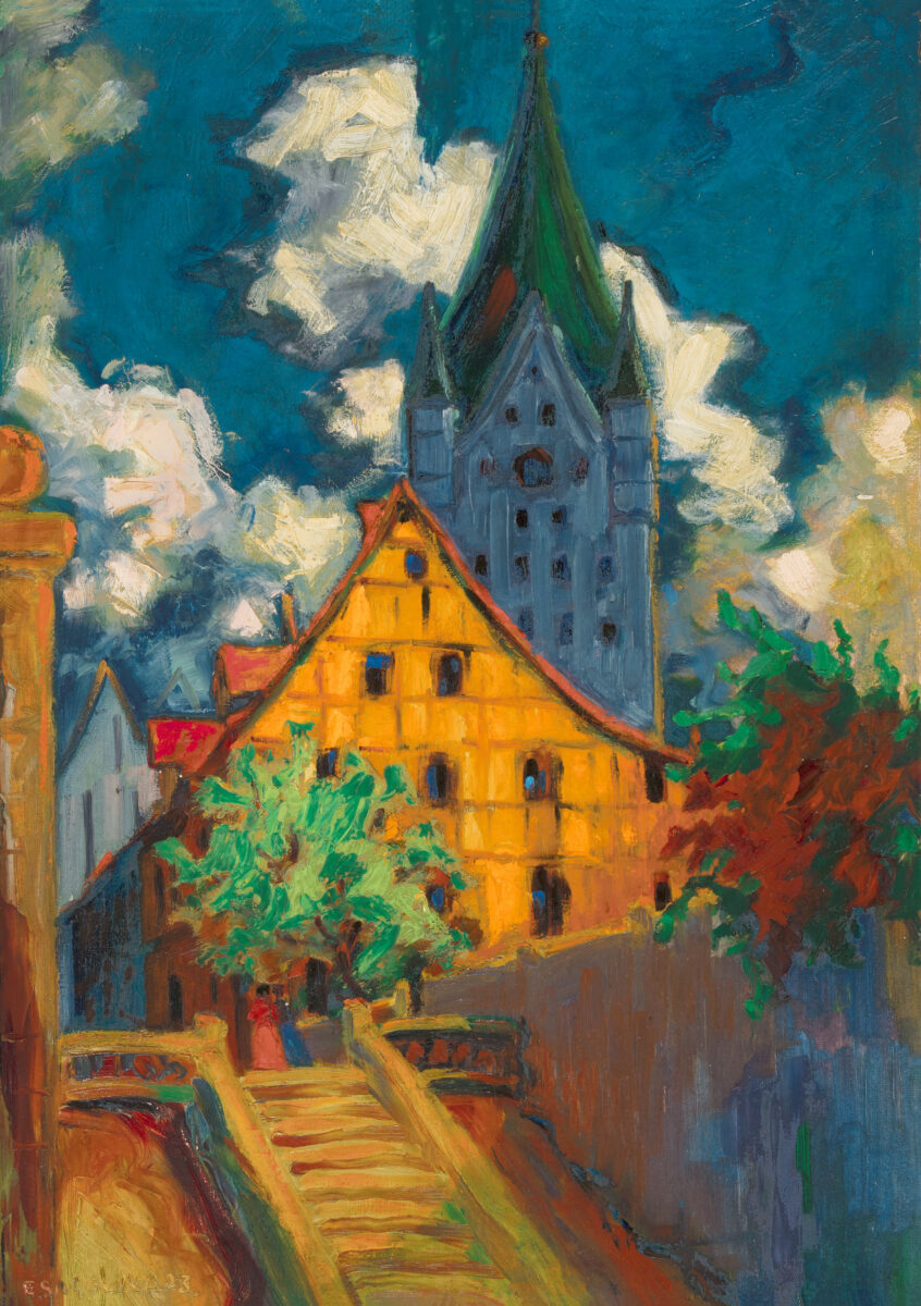 Aus Paderborn (Dom). Öl auf Schichtholz. 1923. 68,5 x 48,7 cm. Gerahmt.